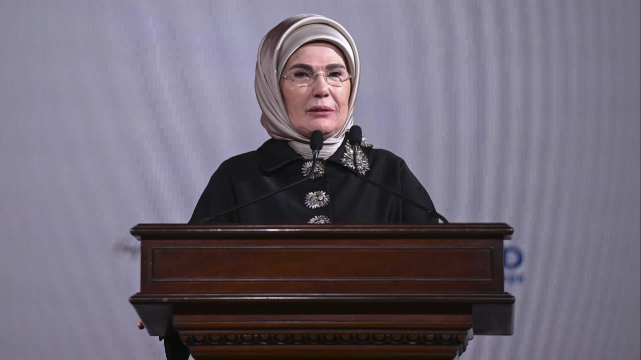 Emine Erdoğan, paylaşımında, Cumhurbaşkanı Erdoğan'ın konuşma yaptığı anların fotoğraflarına da yer verdi. AA