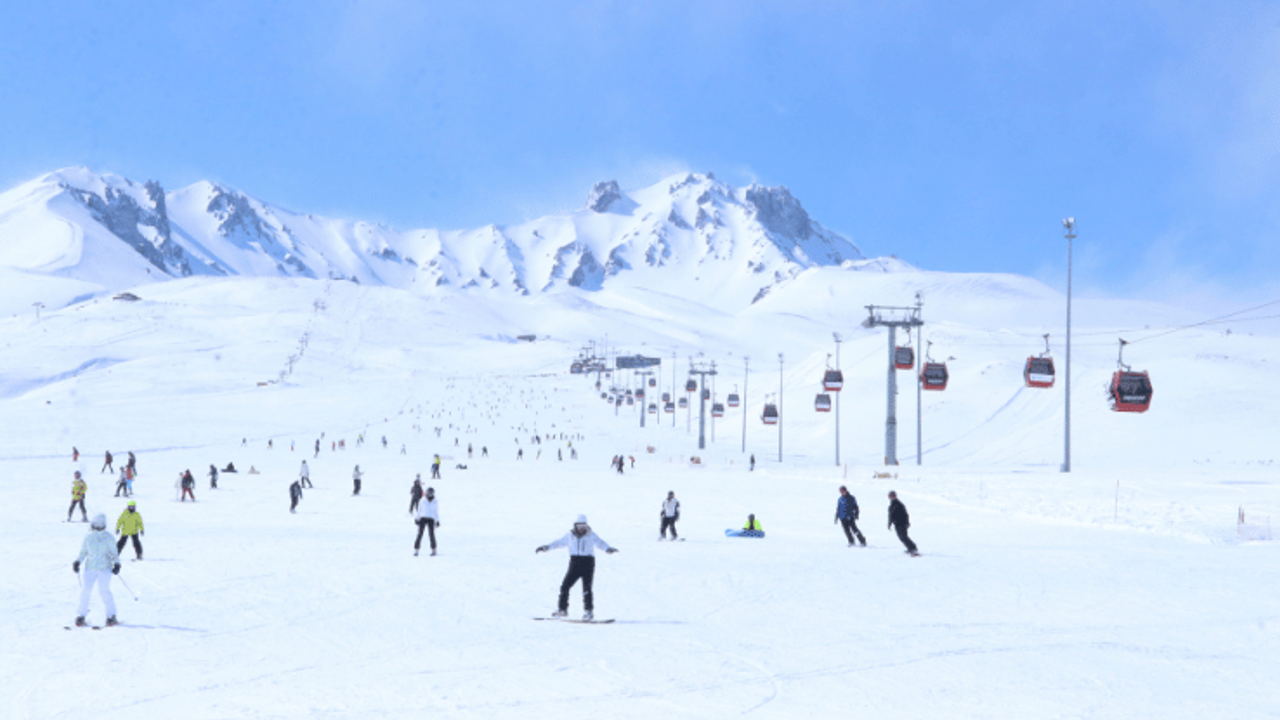 Hafta sonu tatilini Erciyes'te geçirmek isteyenler, İç Anadolu'nun "zirvesi" olarak nitelendirilen Erciyes Dağı'nda yoğunluk oluşturdu.