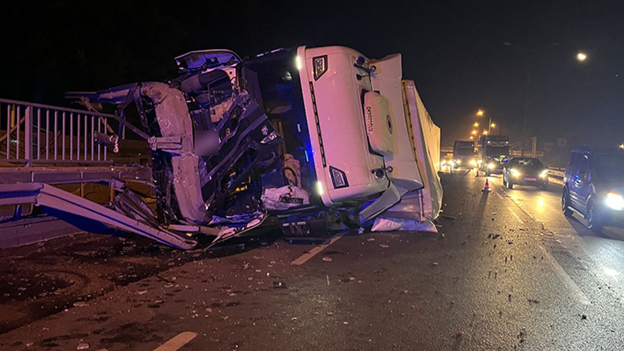 Eskişehir-Ankara kara yolunda Ubeyt A. idaresindeki tır, sürücüsünün direksiyon hakimiyetini kaybetmesi sonucu bariyerlere çarptıktan sonra devrildi.
