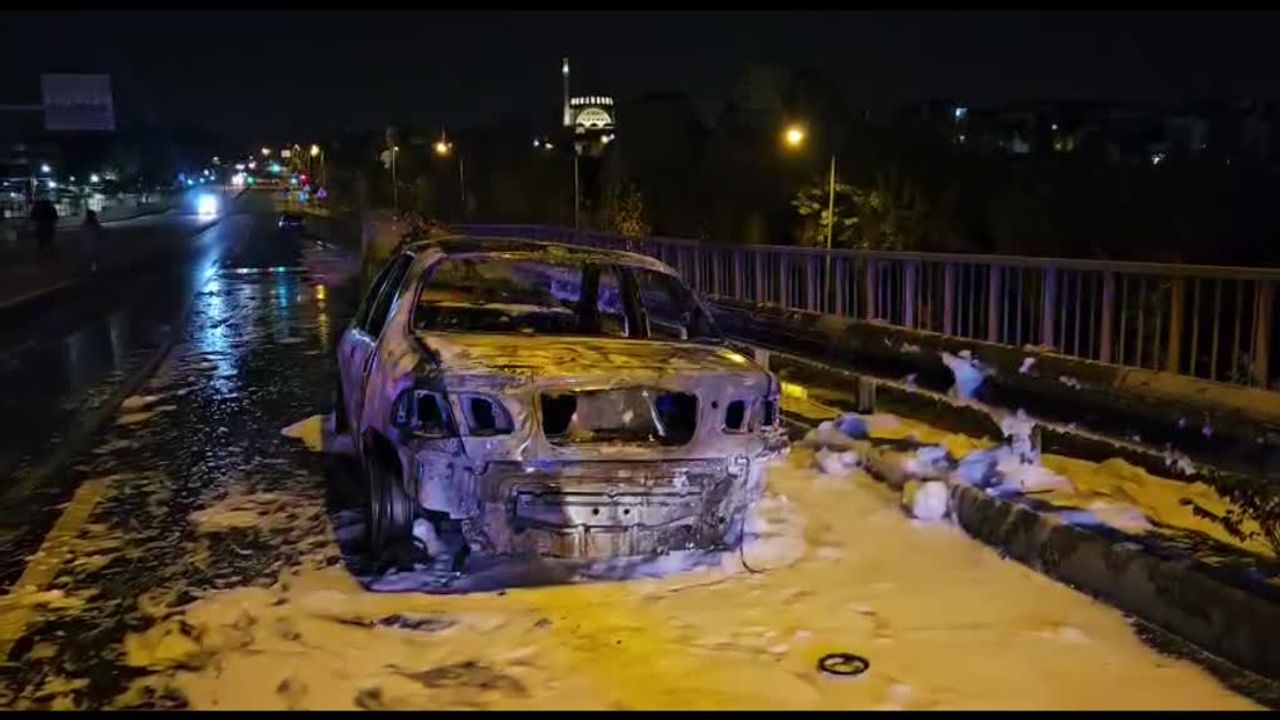 Bir süre sonra yanmaya başlayan otomobilin her tarafını alevler sardı.