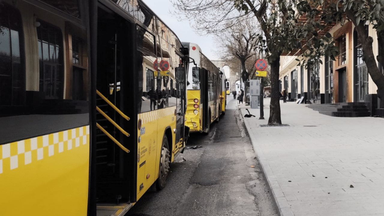 Unkapanı Atatürk Bulvarı'nda durağa yanaşan 3 İETT otobüsü çarpıştı.