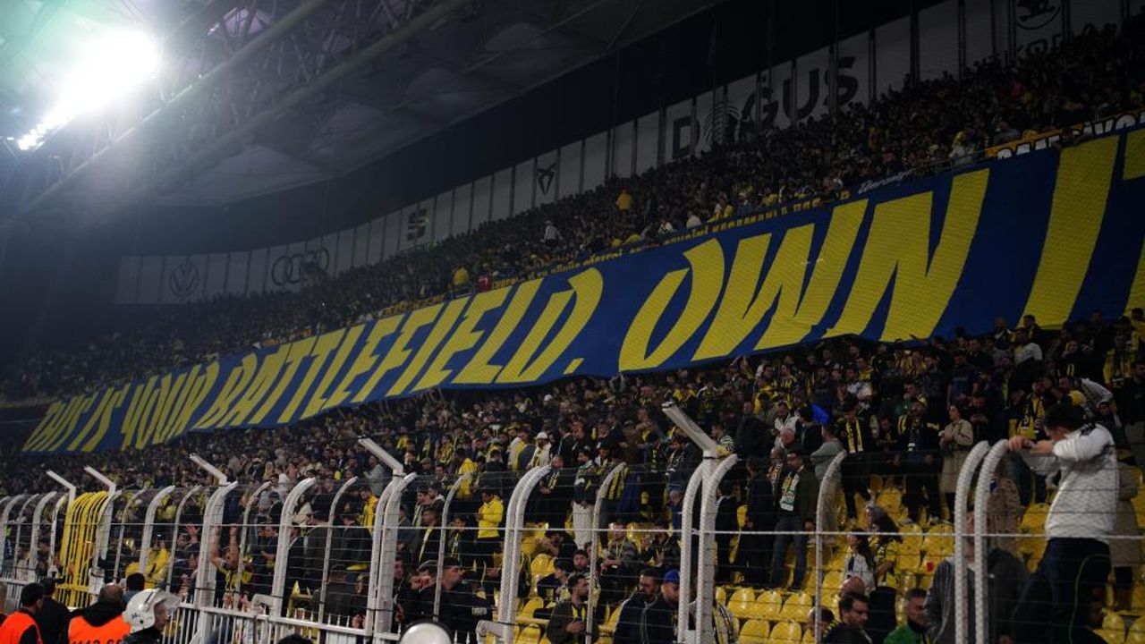 Trendyol Süper Lig'in 14. haftasında Fenerbahçe'nin ezeli rakibi Galatasaray ile karşılaşacağı maç hatırlatılarak üzerinde "This is your battlefield. Own it. 01.12.2025" (Burası senin savaş alanın. Sahip ol) yazılı pankart açıldı.