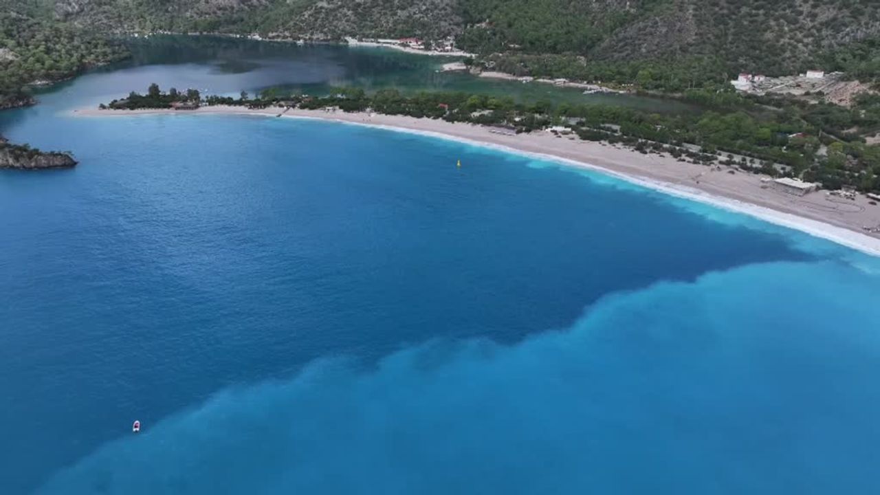 Turkuaza dönüşen denizin rengi dron ile görüntülendi.