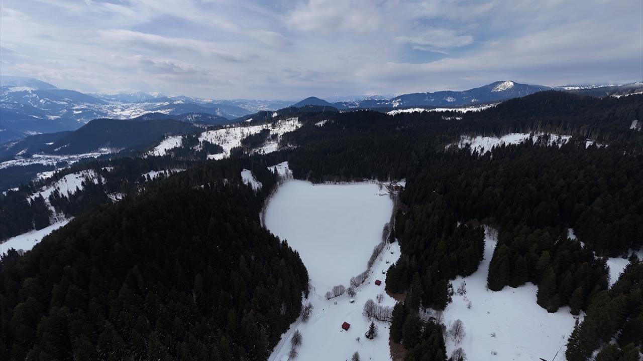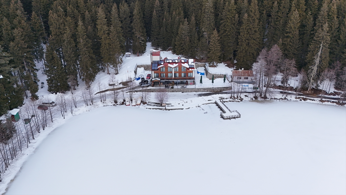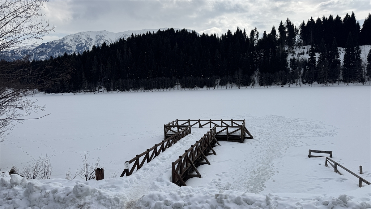 Doğal güzelliğiyle her mevsim yerli ve yabancı ziyaretçilerin ilgi gösterdiği Karagöl Sahara Milli Parkı içerisindeki göl, kar yağışının ardından beyaza büründü.