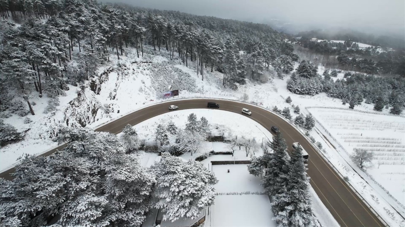 Özellikle virajların oluşturduğu simetrik desenler ve karla kaplı ağaçlar, Uludağ'ın doğal güzelliğini bir kez daha gözler önüne serdi.