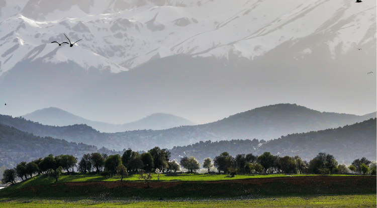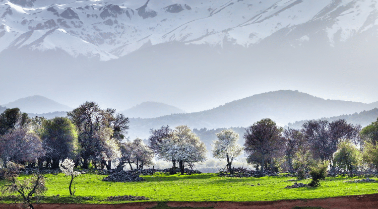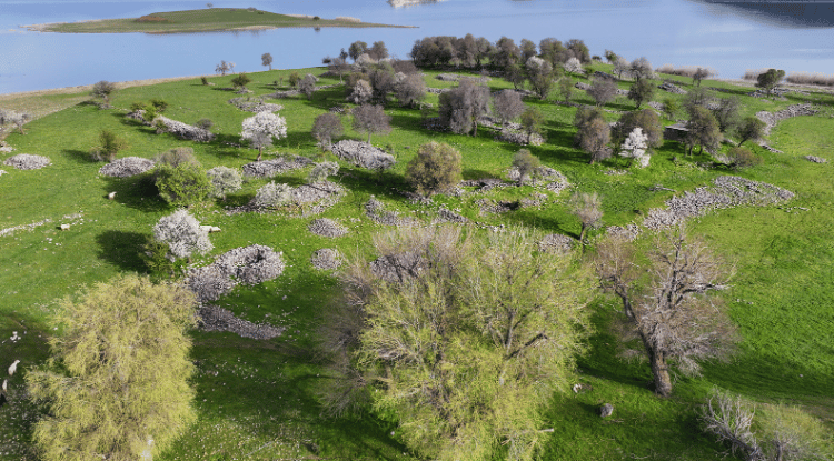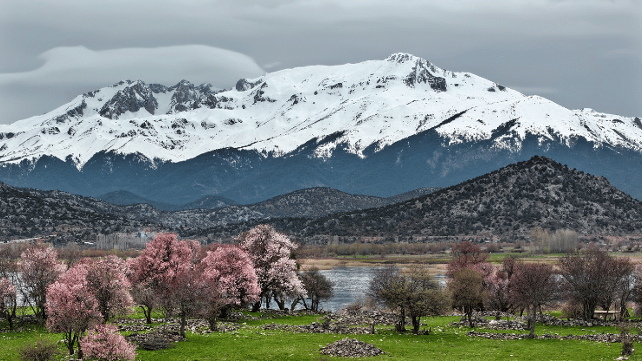 Beyşehir Gölü'nün adalarında yeşil çayırlar kendini gösterirken, çiçek açan ağaçlar ile zirvelerdeki kar örtüsünün oluşturduğu manzara, bölgeye ayrı bir güzellik kazandırıyor.