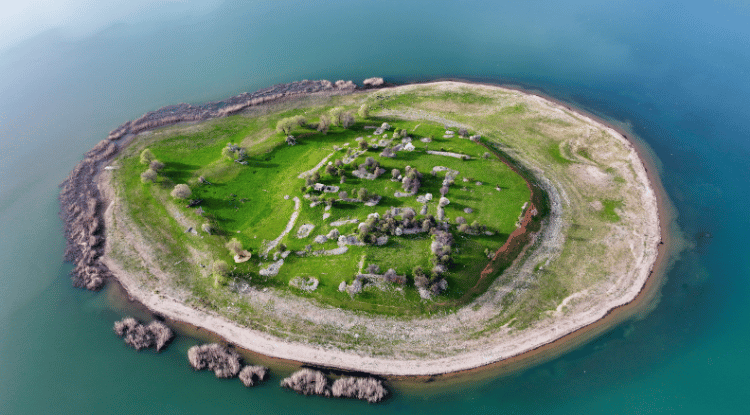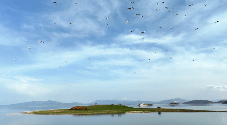 Sisli dağları, geniş çayırları ve göl üzerindeki adalarıyla dikkat çeken bölge güzel görüntüler sunarken, Kurucuova Mahallesi açıklarındaki iki ada çevresinde uçuşan martı sürüleri doğaya ayrı bir hareket katıyor.