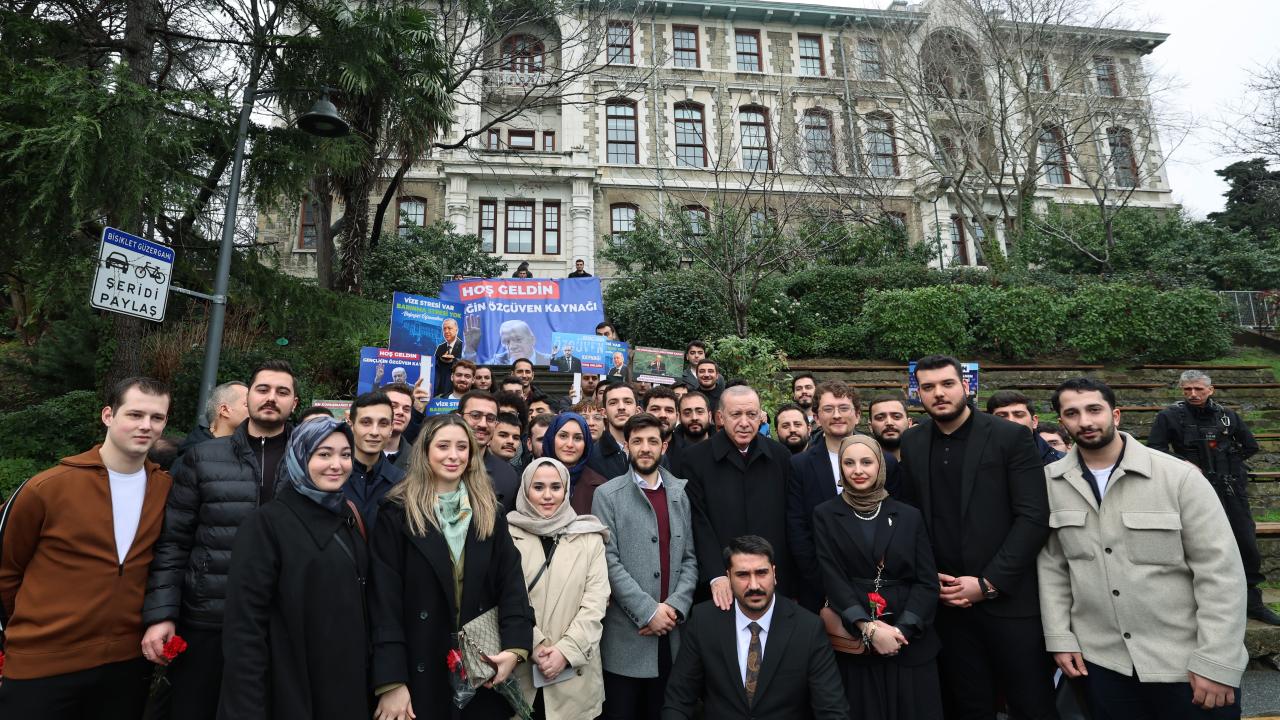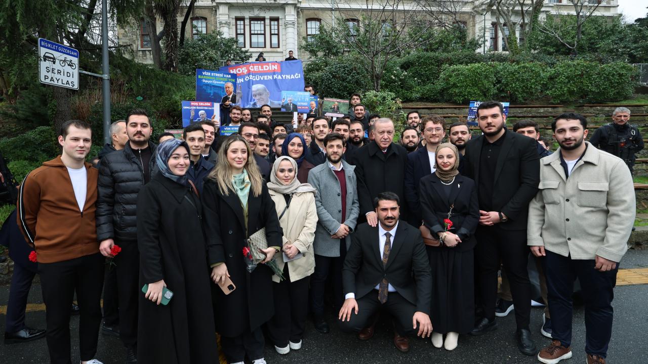 Burada kalabalık öğrenci grubu tarafından karşılanan Erdoğan’a bazı öğrenciler "Gençlik seninle gurur duyuyor" sloganıyla sevgi gösterisinde bulundu.