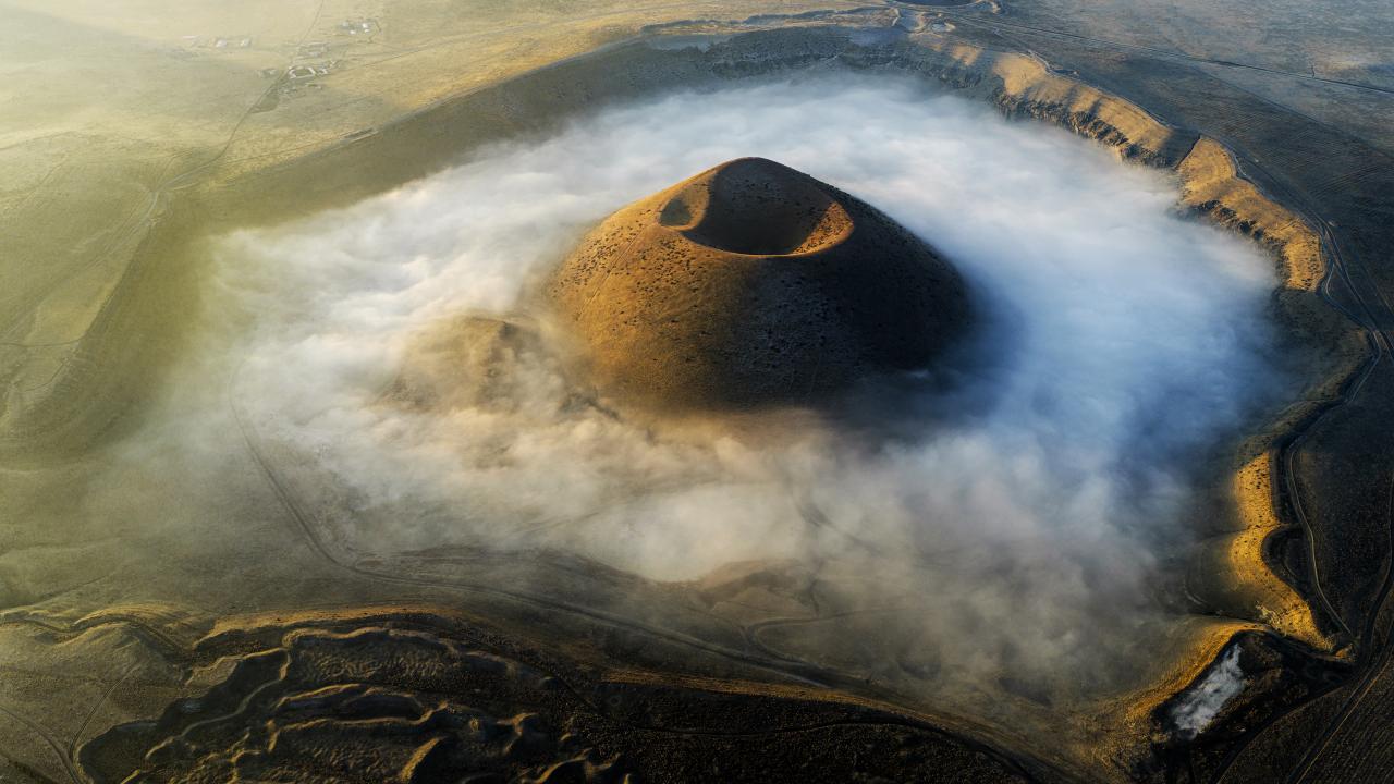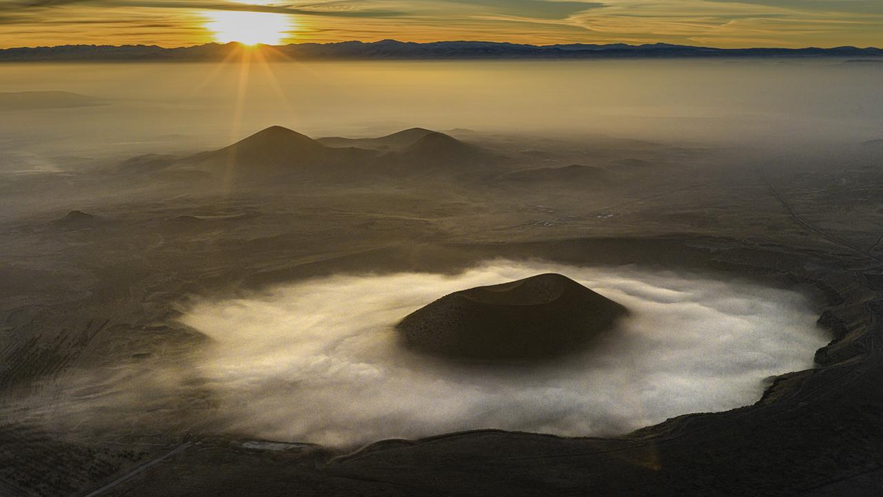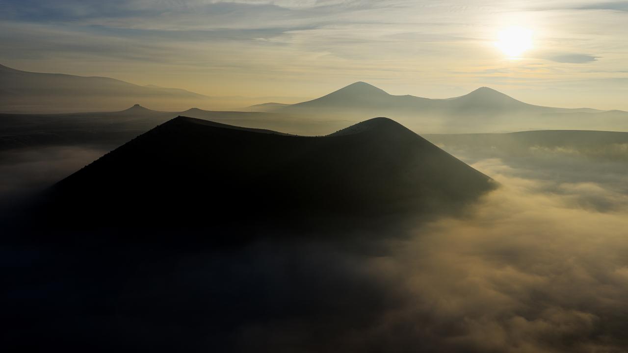 Volkanik yapısıyla dikkat çeken Meke Gölü’nde sisin zaman zaman yoğunlaşarak dağılması, göl ve çevresindeki krater yapısını farklı açılardan ortaya çıkardı.