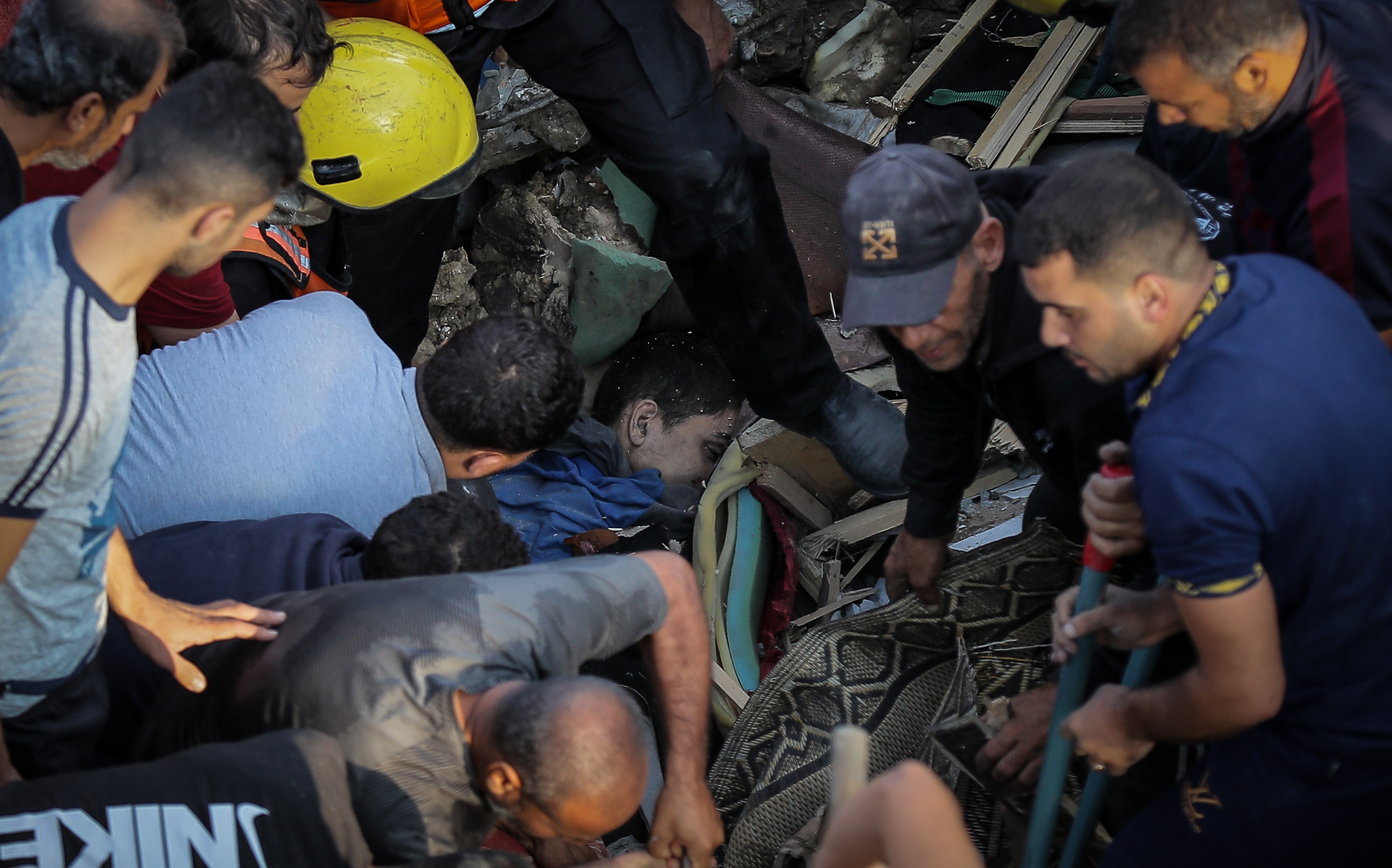 Han Yunus kentine düzenlenen saldırılarda yerle bir olan Mısri ailesine ait eve gelen sivil savunma ekipleri ve bölge sakinleri arama kurtarma çalışması başlattı.