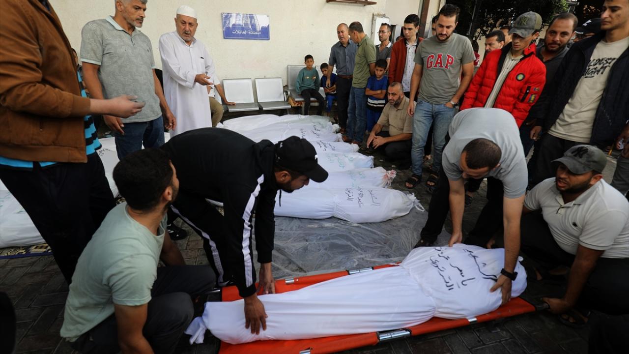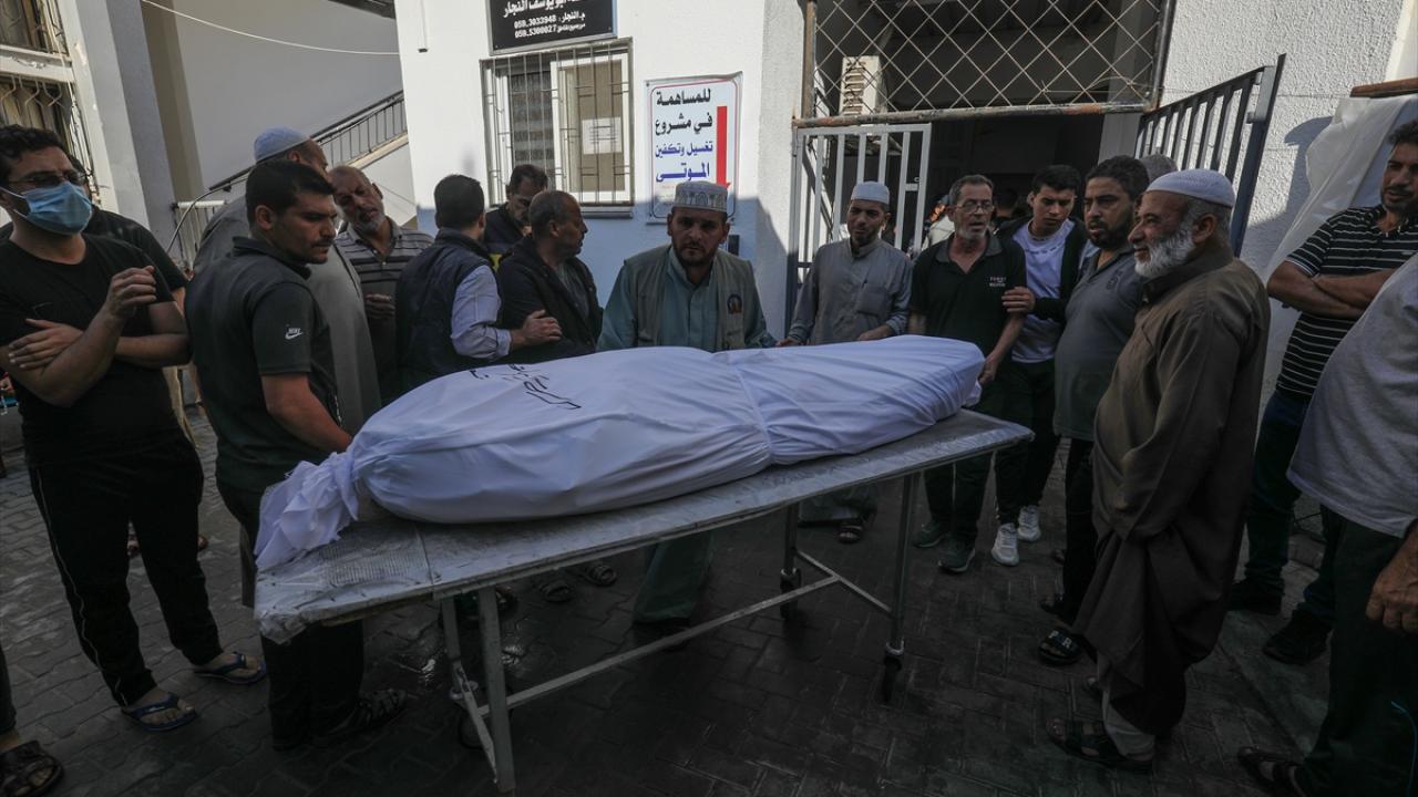 Saldırılarda hayatını kaybedenlerin naaşları, yakınları tarafından toprağa verilmek üzere Refah kentindeki En-Neccar Hastanesi morgundan alındı.
