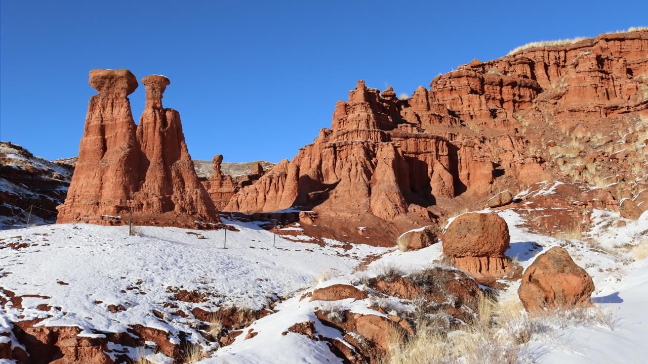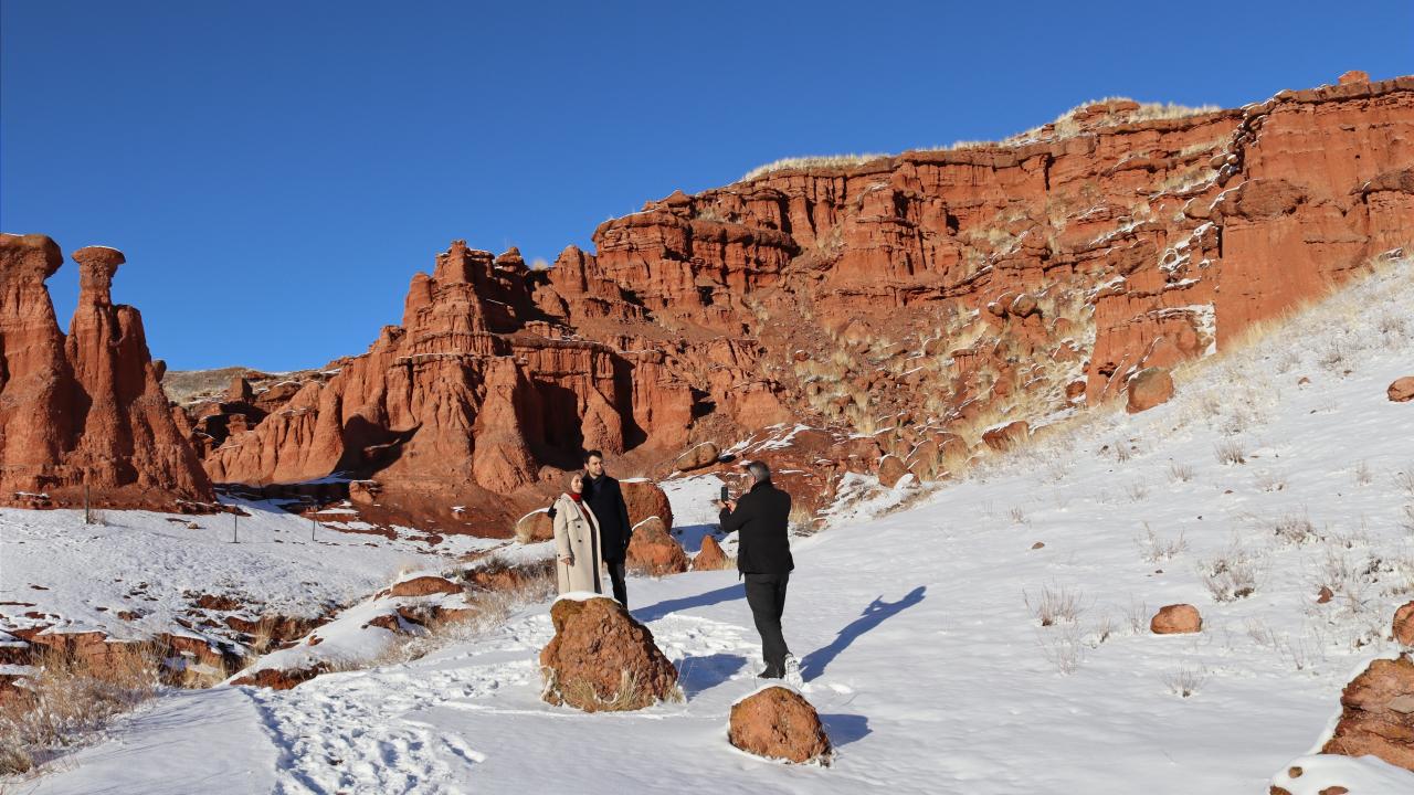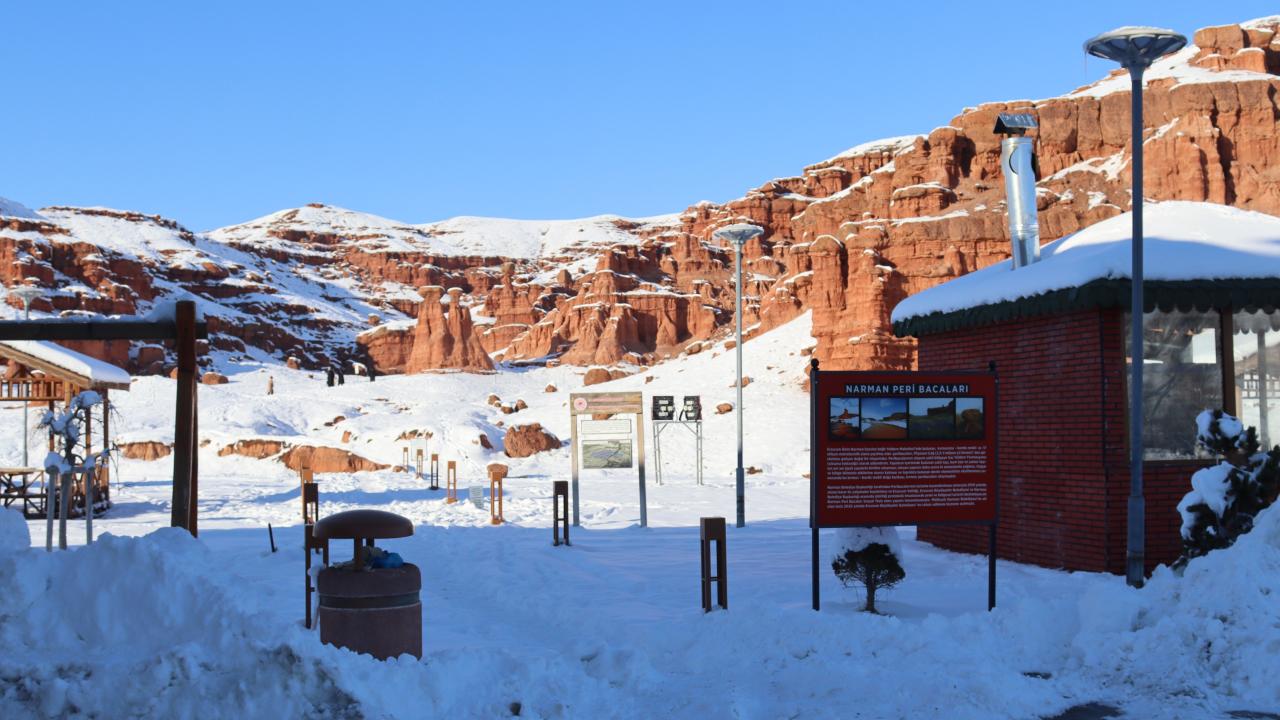 Peribacaları ve çevresi kar yağışı ile beyaza büründü.