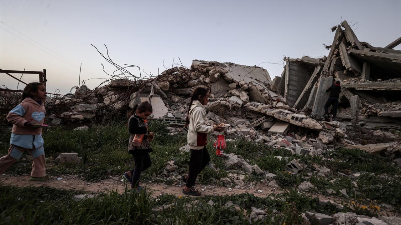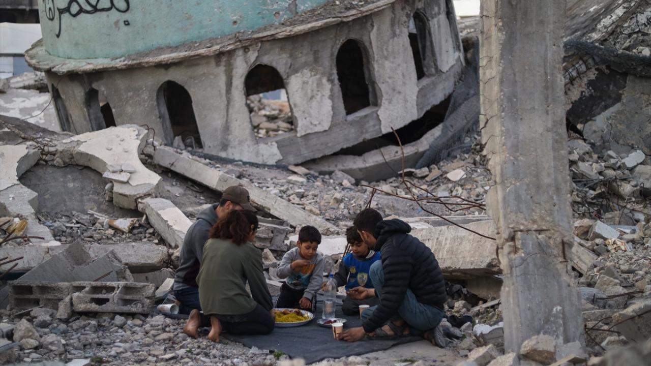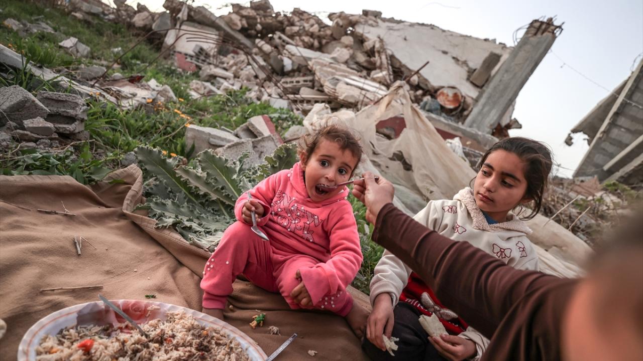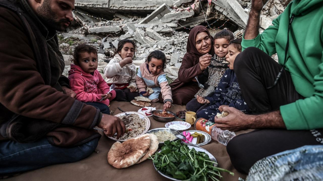 Gazze kentinin Tel el-Heva Mahallesi’nde yaşayan Filistinli bir aile, ramazanın ilk iftarını İsrail’in son saldırılarında yıkılan evlerinin enkazı üzerinde yaptı.