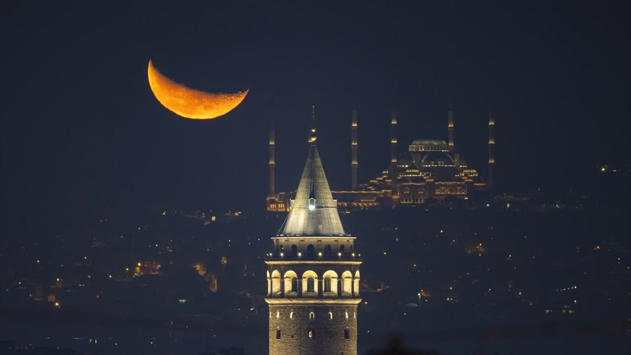 İstanbul'da hilal, Galata Kulesi ve Çamlıca Camisi ile birlikte görüntülendi.