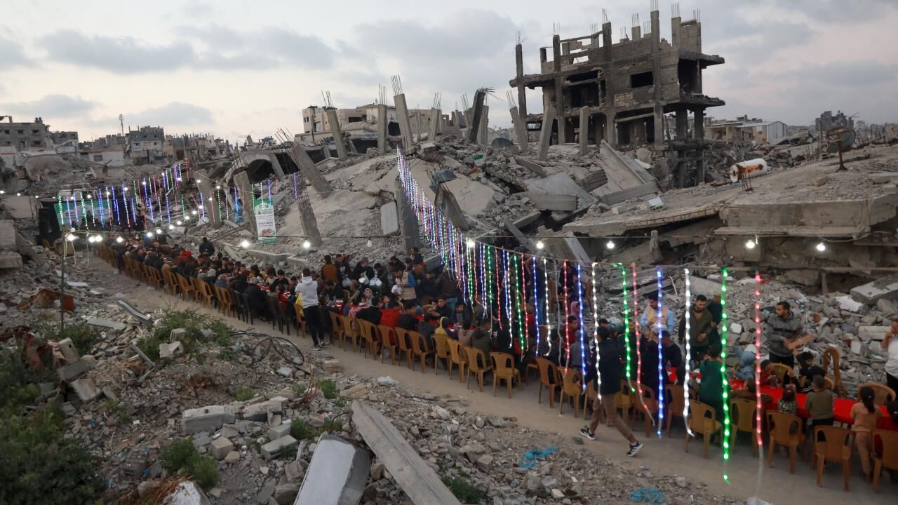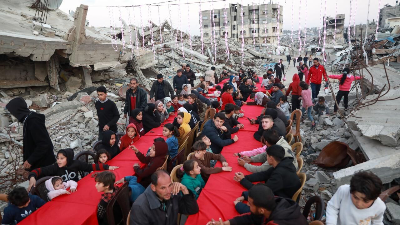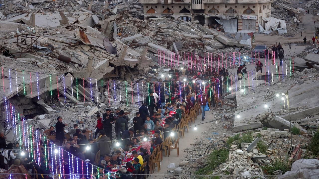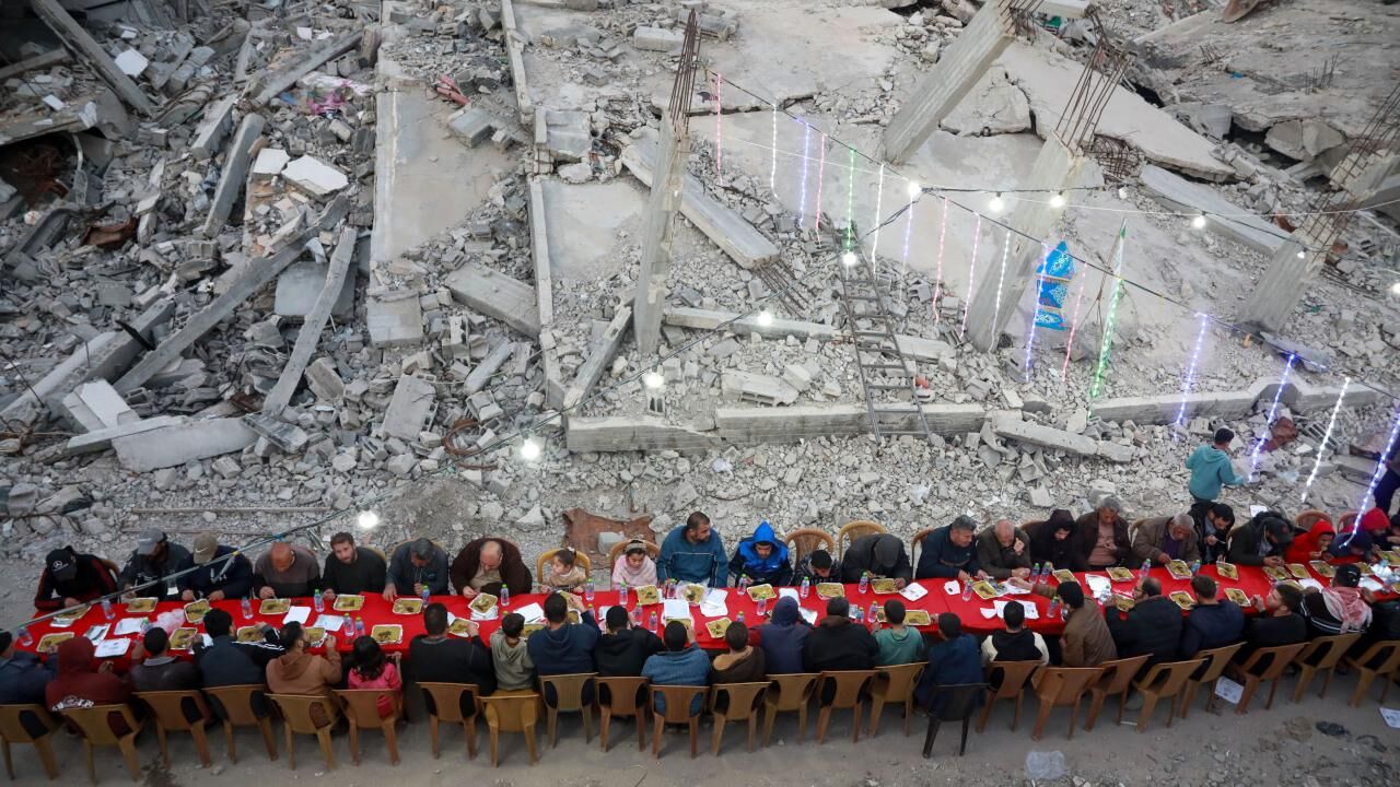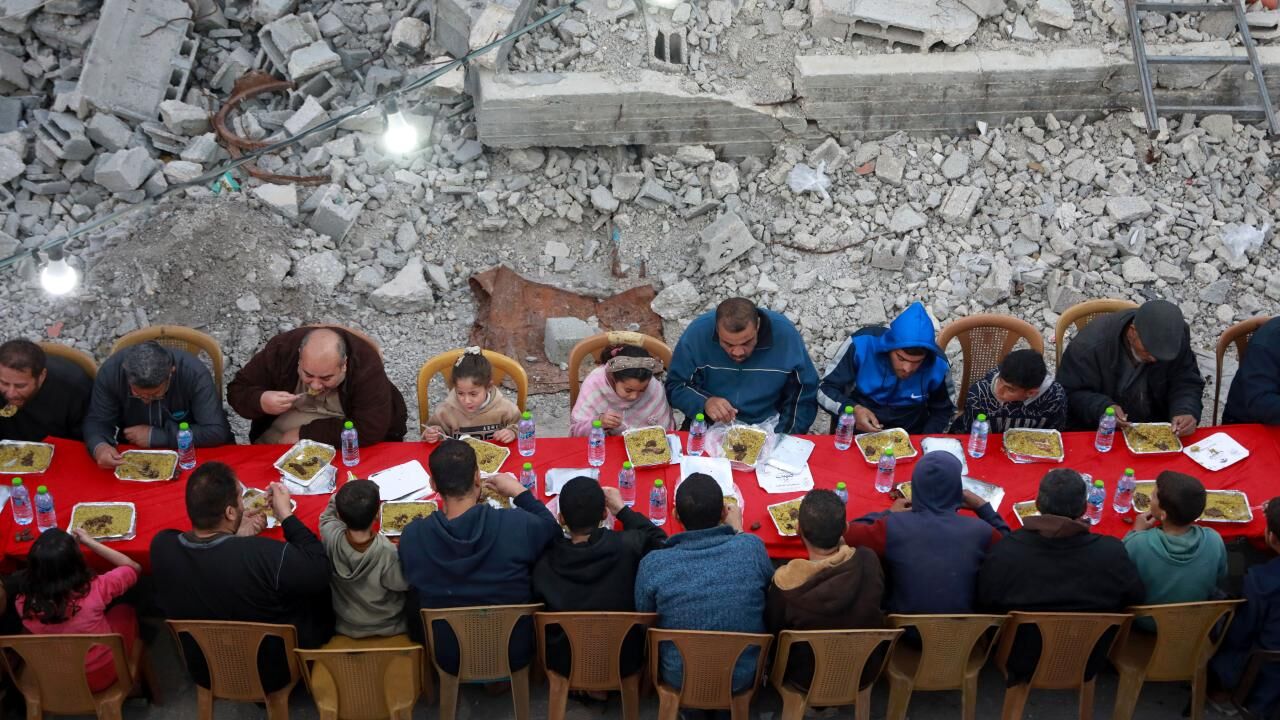 İsrail saldırılarında yıkıma uğrayan Gazze’nin Şeyh Radvan Mahallesi’nde, bir hayır kurumu tarafından toplu iftar programı düzenlendi. Yıkılan binalar arasında bir araya gelen Filistinliler, birlikte oruçlarını açtı.