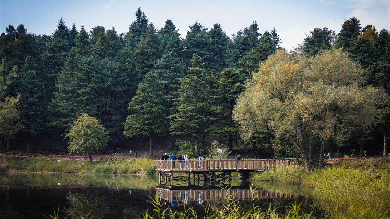 Çeşitli ağaç türlerinden oluşan ormanlar, kahverengi, sarı ve yeşilin farklı tonlarıyla göllerin çevresini süsledi.
