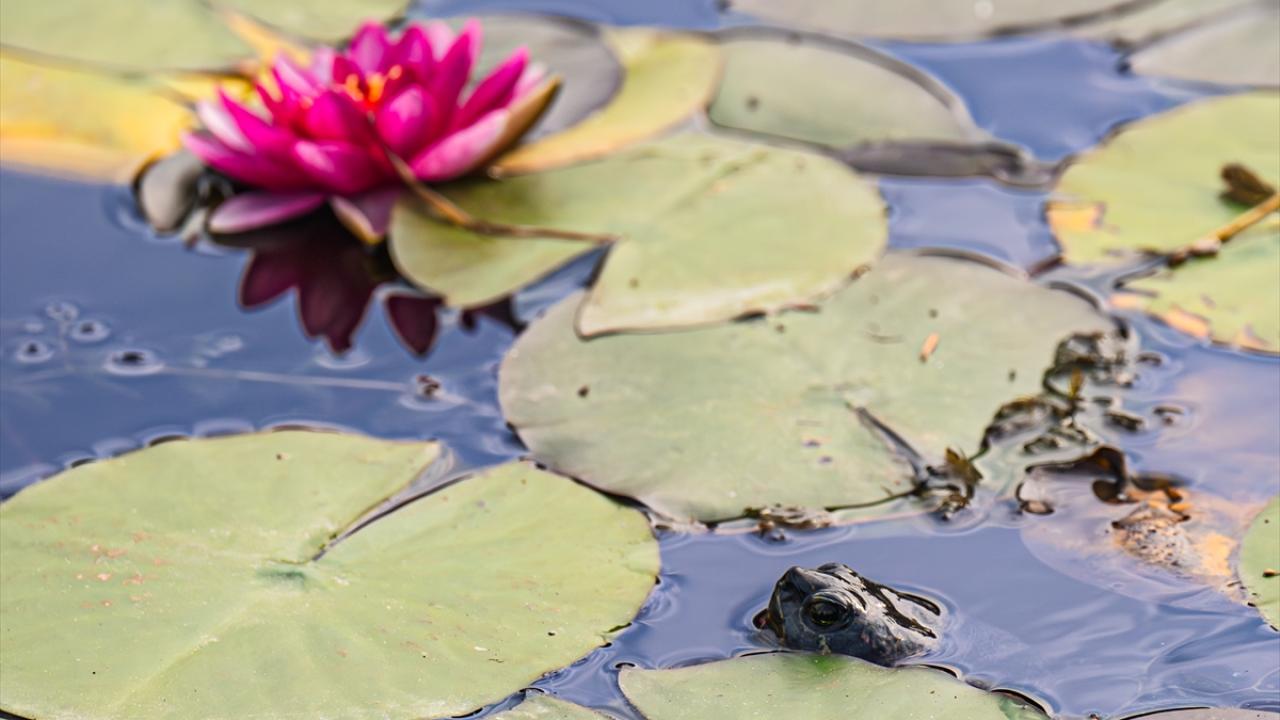 Parkın içinde yer alan gölde yetişen nilüferler, doğayı süslüyor.