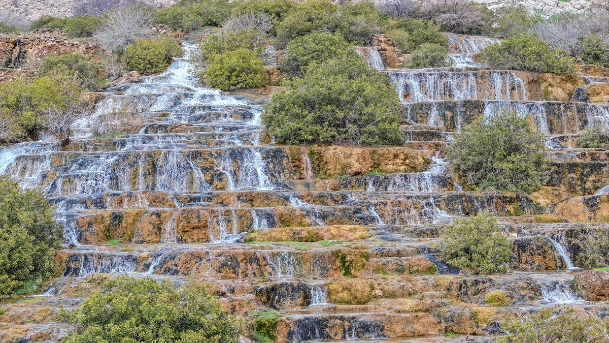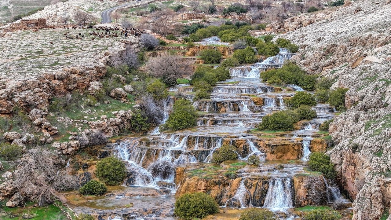 Mardin'in Kızıltepe ilçesinde geçmiş yıllarda yağış azlığı ve kuraklık nedeniyle kuruyan, bu yıl ise yağışlarla yeniden canlanan yörede "Emrud travertenleri" olarak bilinen su kaynağı da çağlayanlar ve şelaleler oluşturarak akıyor.