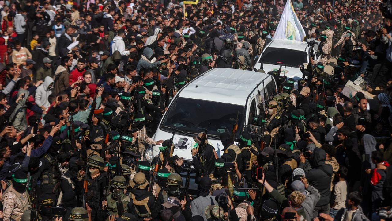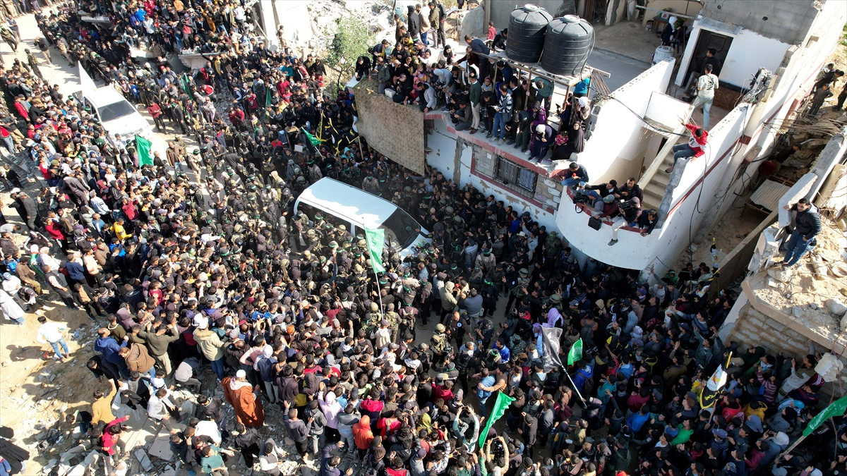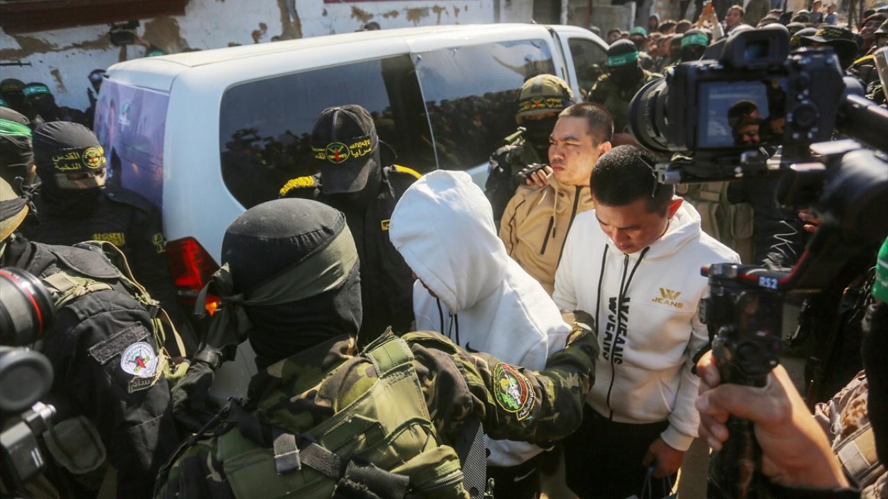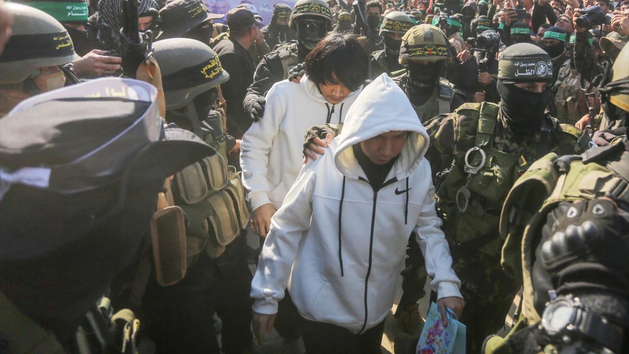 Yehud ve Moses ile 5 Tayland vatandaşından oluşan 7 esir ise Han Yunus kentinde Hamas’ın Gazze’deki öldürülen lideri Yahya Sinvar`ın evinin bulunduğu bölgede yoğun kalabalık eşliğinde Kızılhaç ekiplerine teslim edildi.