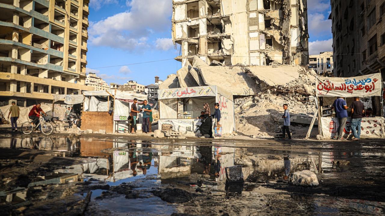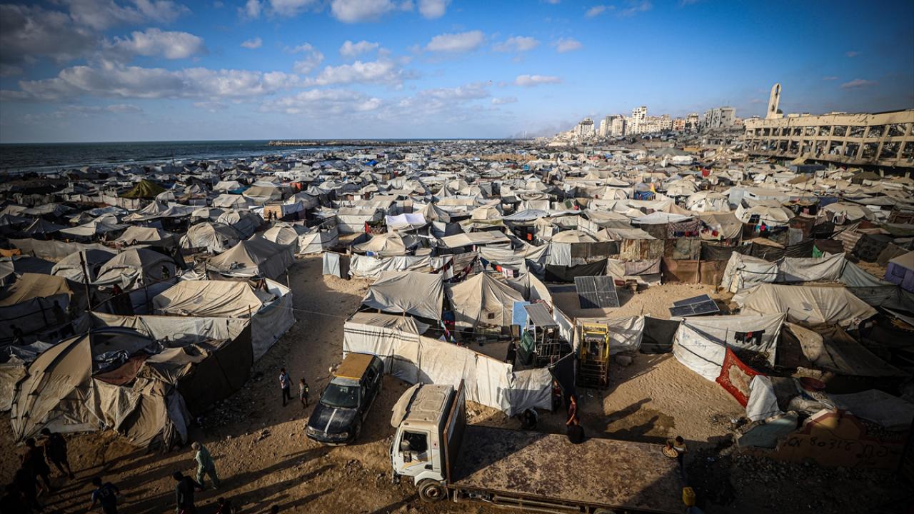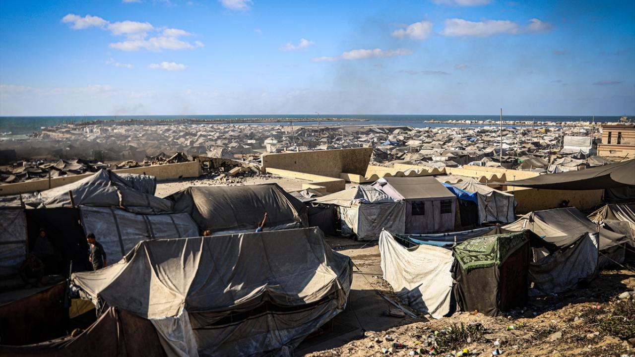 İsrail saldırıları nedeniyle Gazze'nin kuzeyinden göç etmek zorunda kalan binlerce Filistinli, kentin batısında sahil kıyısına kurdukları derme çatma çadırlarda hayatta kalma mücadelesi veriyor.