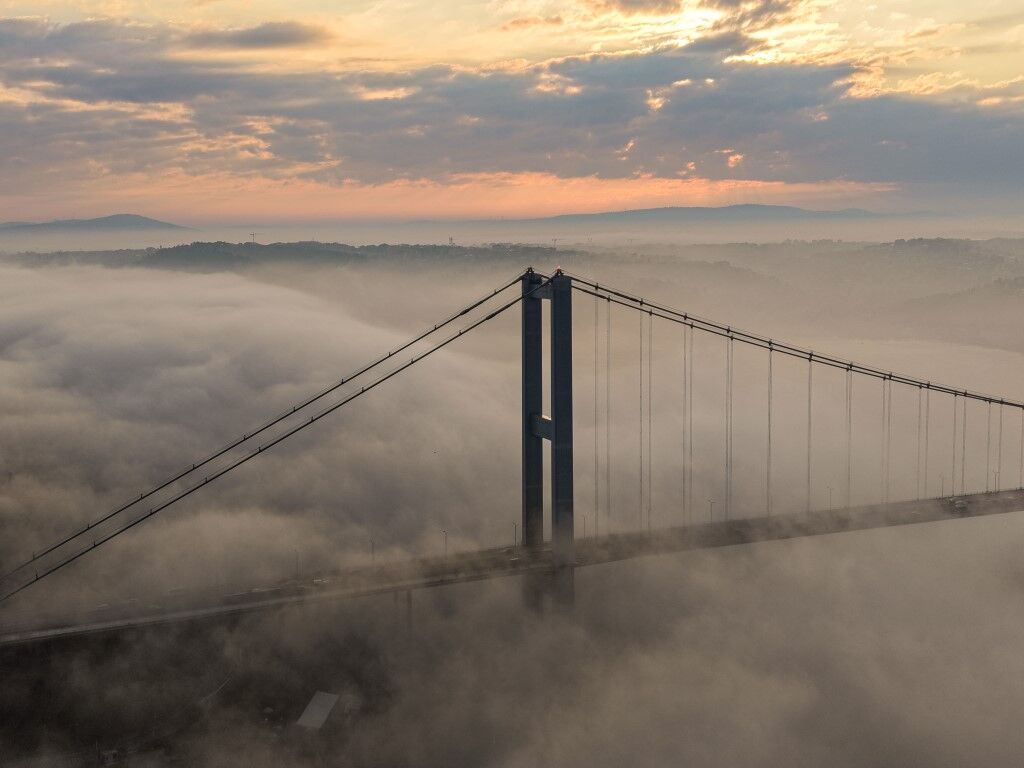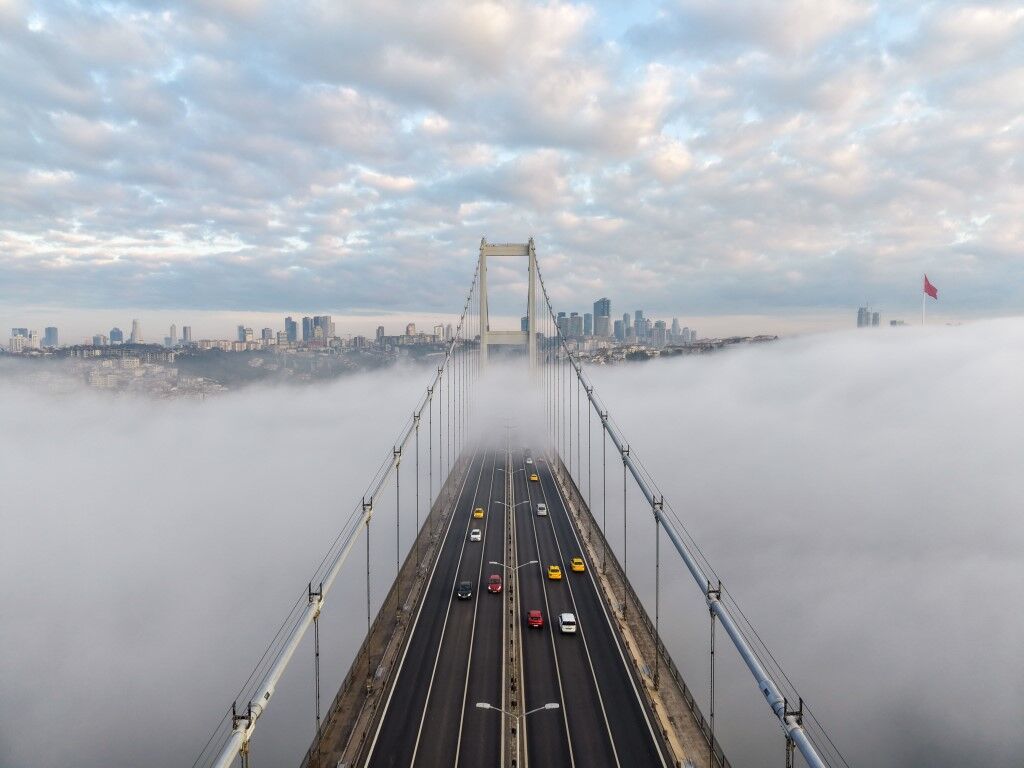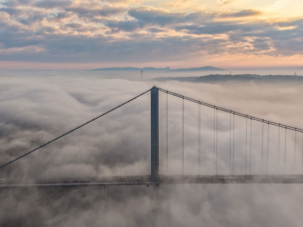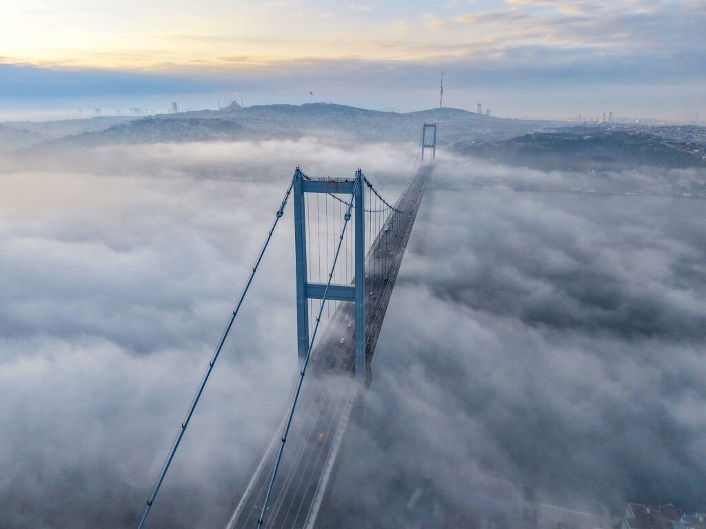 Sis nedeniyle görüş mesafesinin düşmesiyle birlikte İstanbul Boğazı’nda gemi trafiği kapandı. Sis bulutlarının arasından süzülen gün ışığıyla ortaya çıkan manzara İstanbul siluetine farklı bir atmosfer kazandırdı.