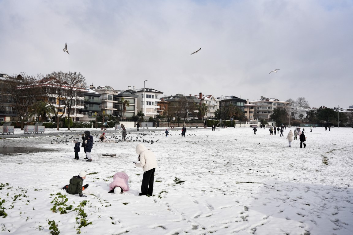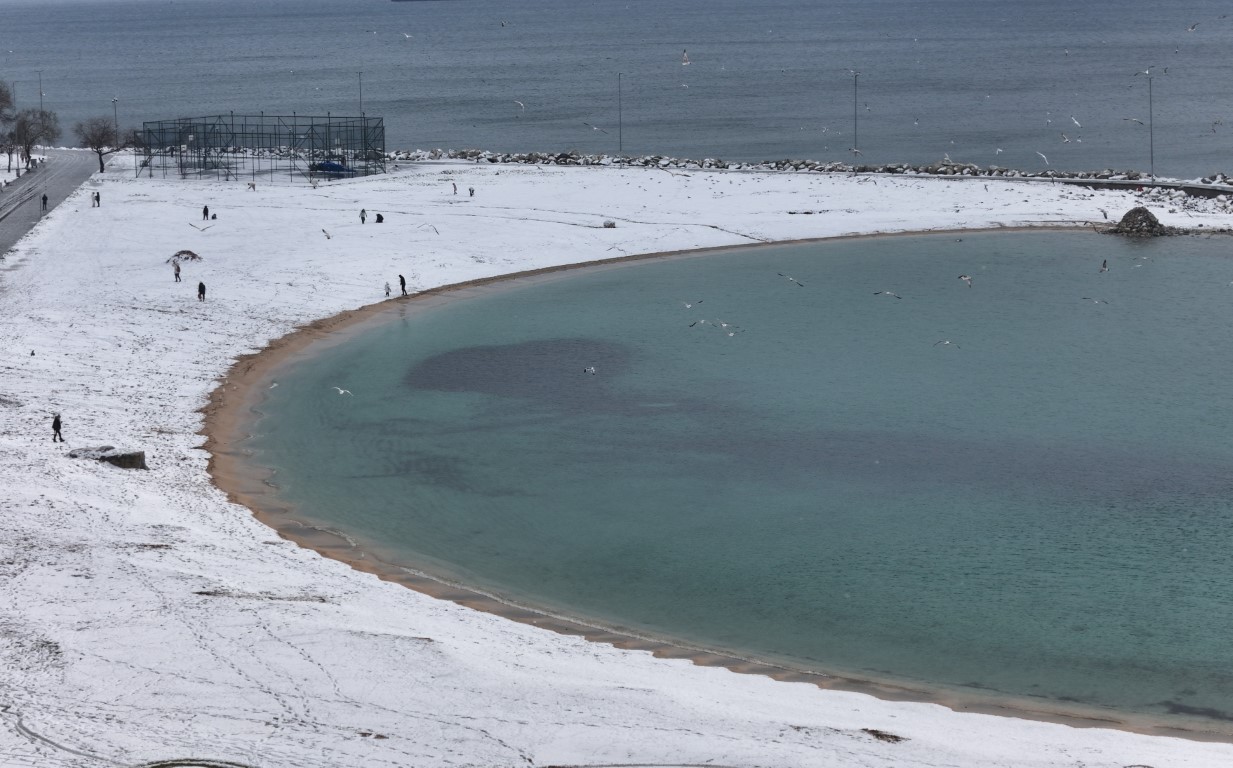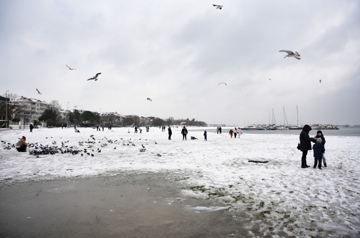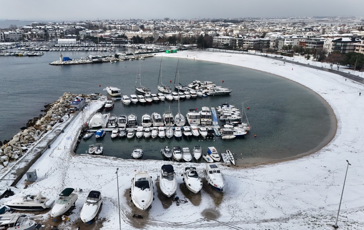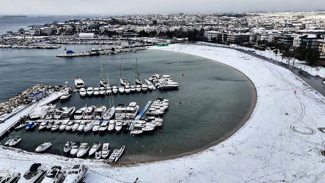 İstanbul'da dün başlayan ve gece saatlerinde etkisini artıran kar yağışı sonrası birçok nokta beyaza bürünürken, Bakırköy'de bulunan Yeşilköy sahili de beyaz örtüyle kaplandı.
