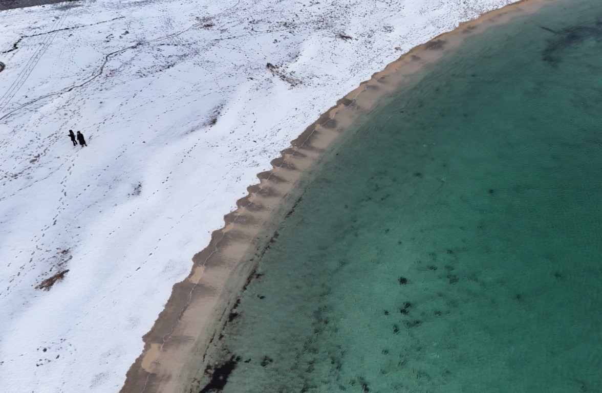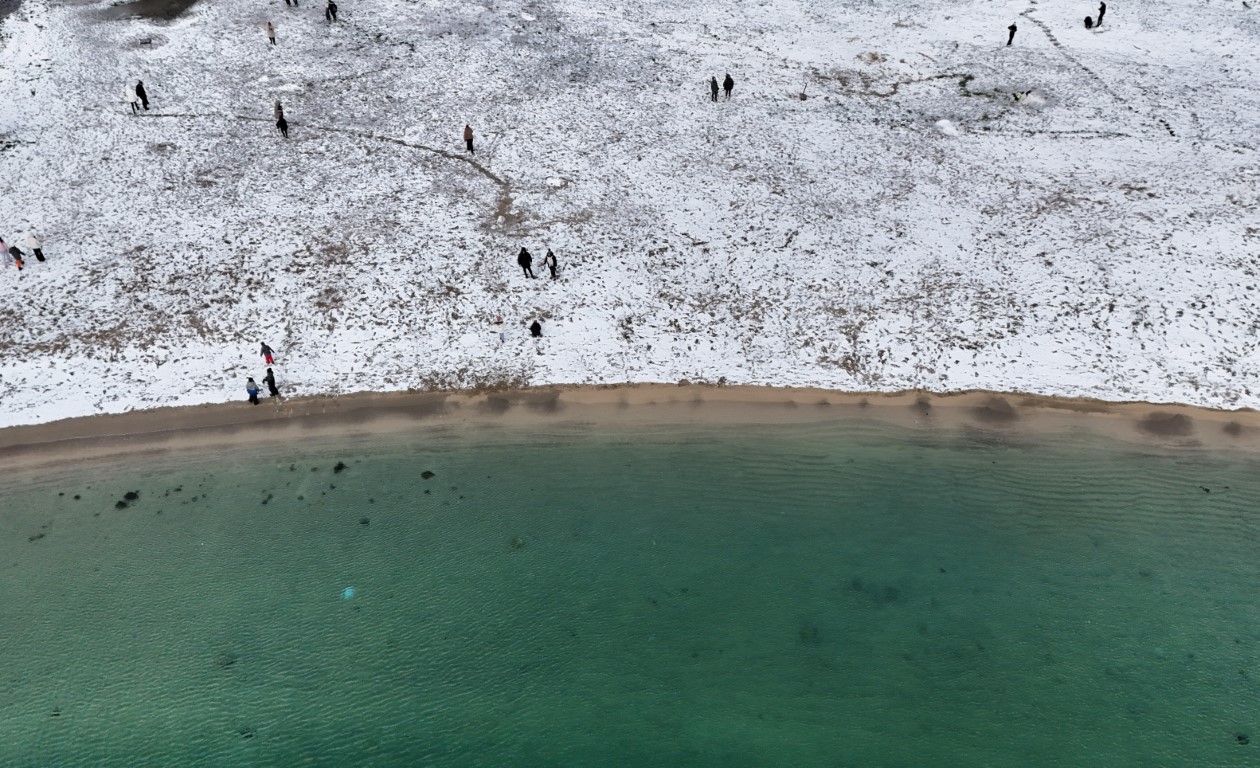 Sahilin mest eden karlı manzarası havadan görüntülendi.