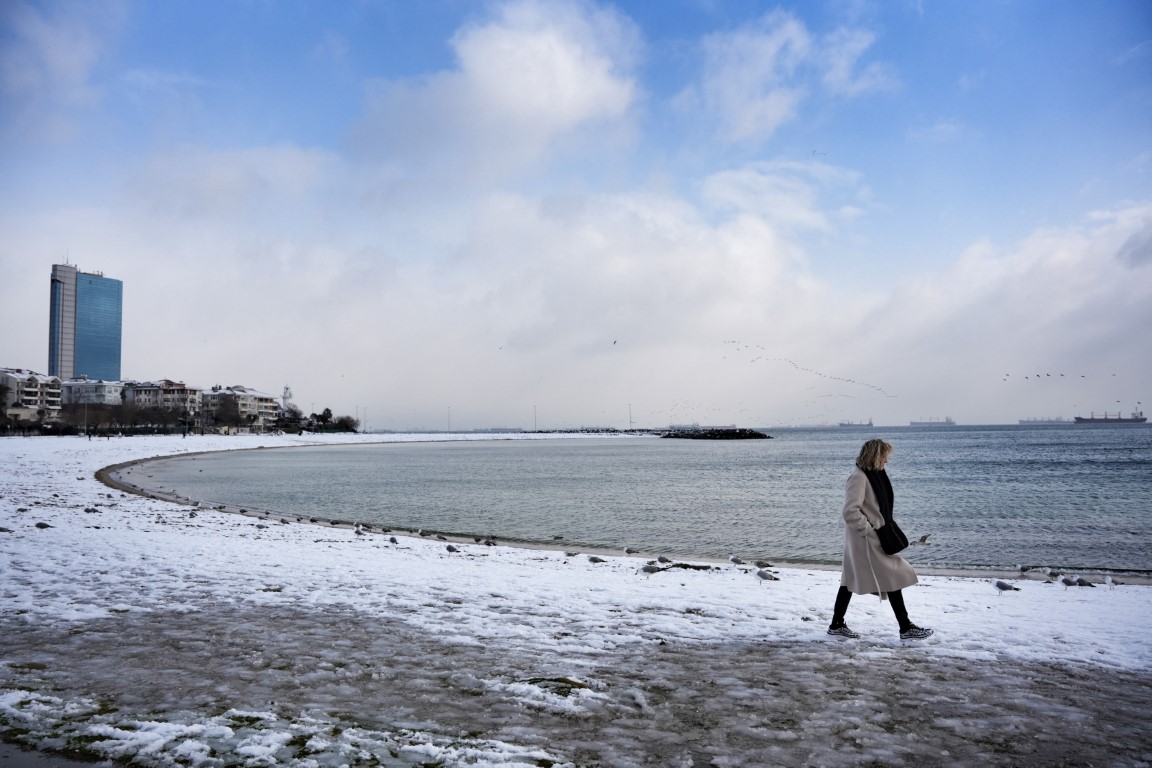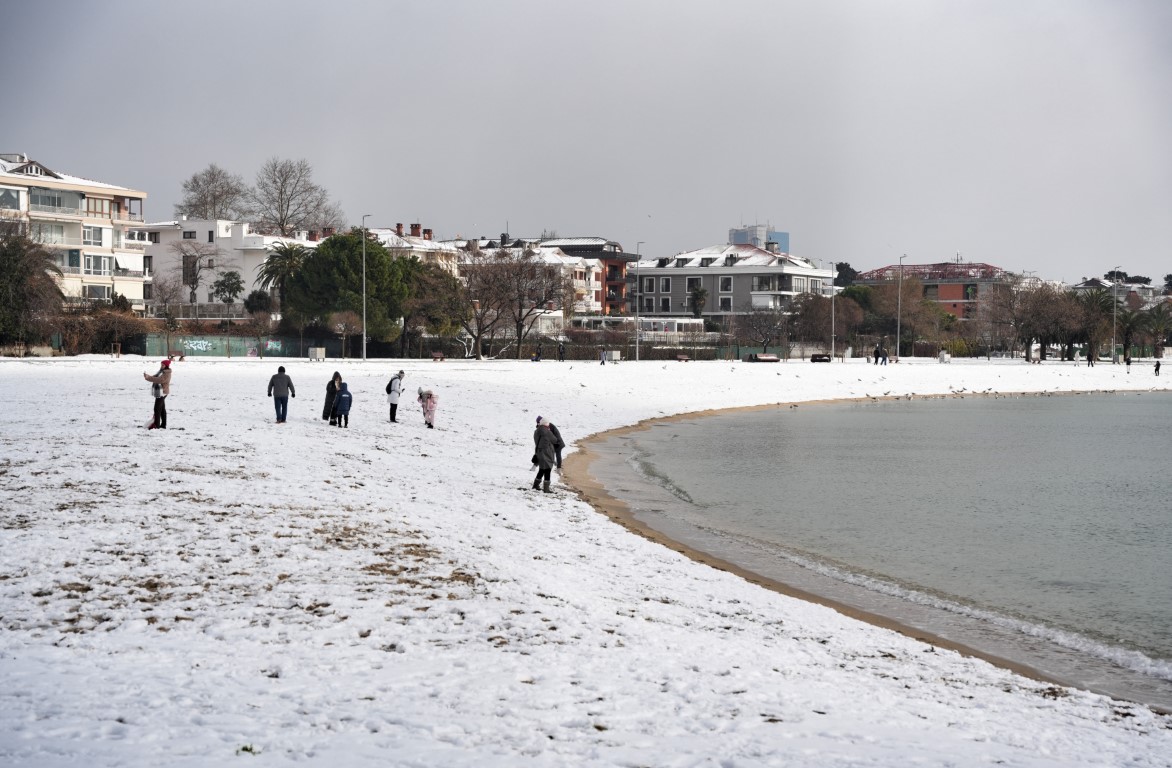 Sahile gelen vatandaşlardan bazıları yürüyüş yaparken, kimi de kartopu oynadı.