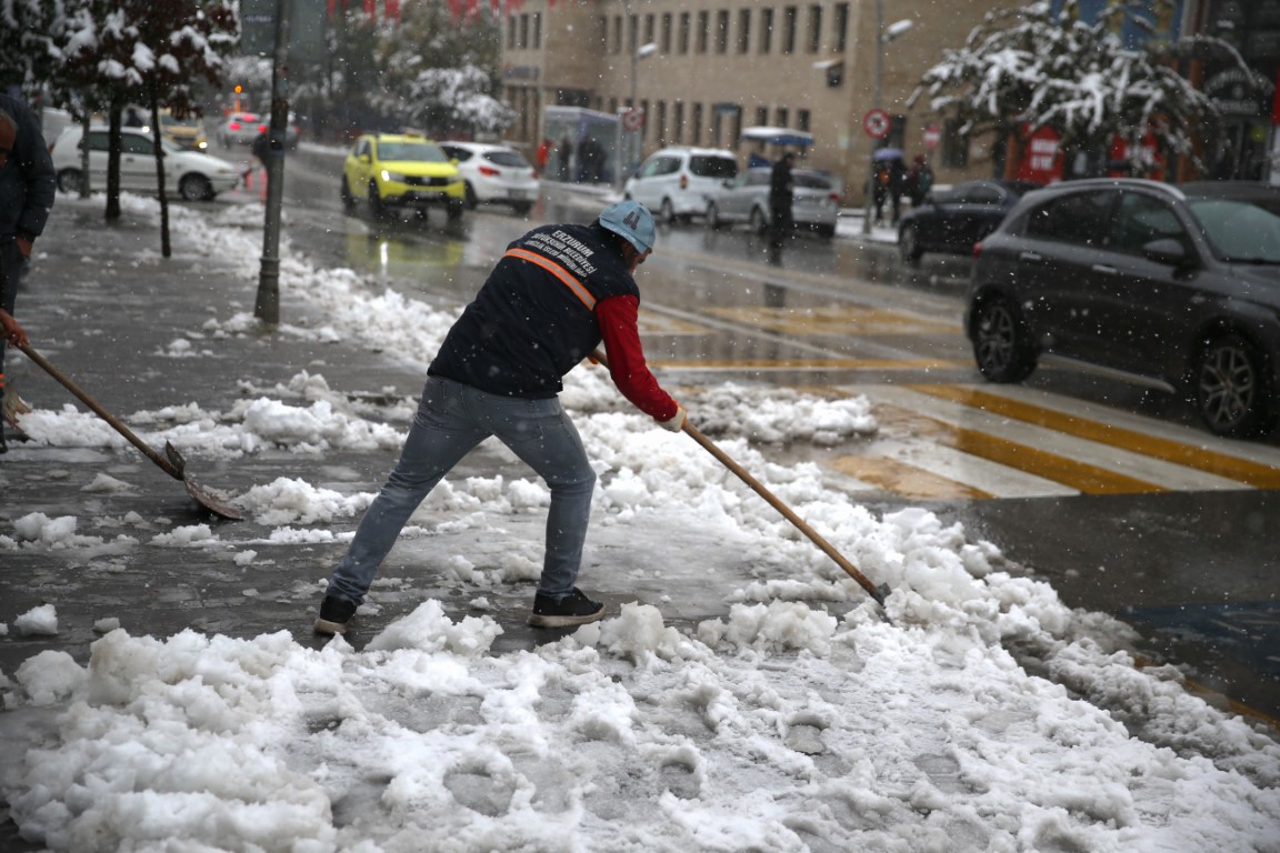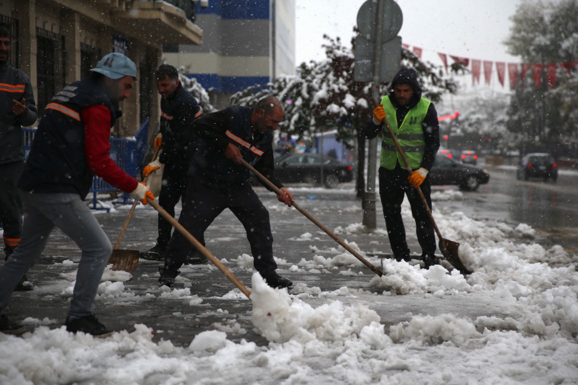Büyükşehir Belediyesi ve ilçe belediye ekipleri ise sorumluluk bölgelerinde kar küreme çalışması yürüttü.