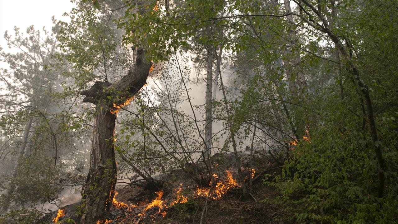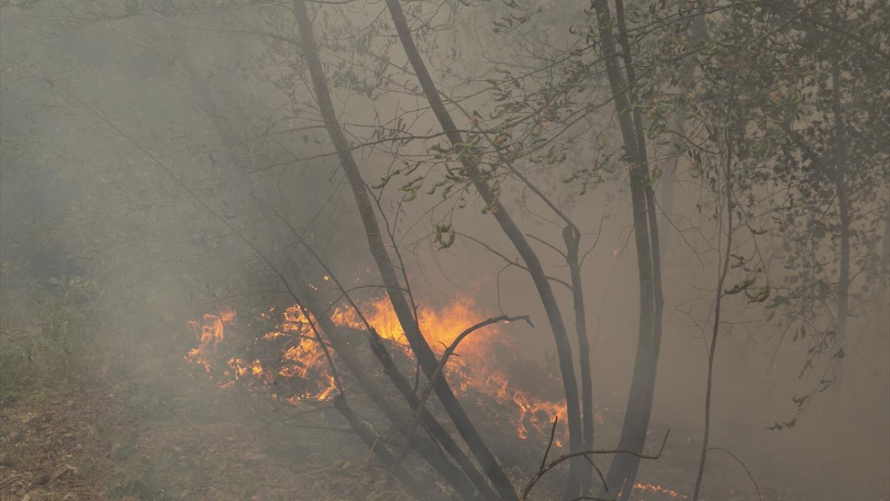 Yoğun dumanla kaplı bölgede, gündüz helikopter destekli yürütülen söndürme çalışmaları gece boyunca karadan sürdü.