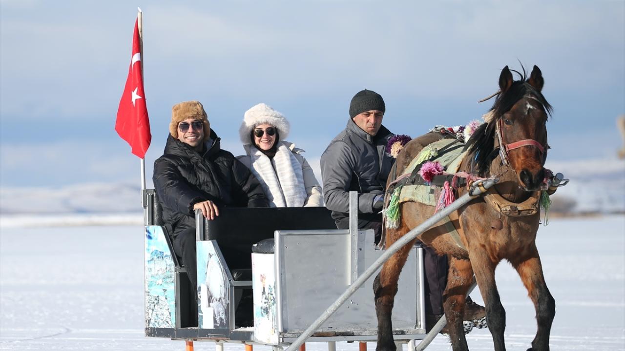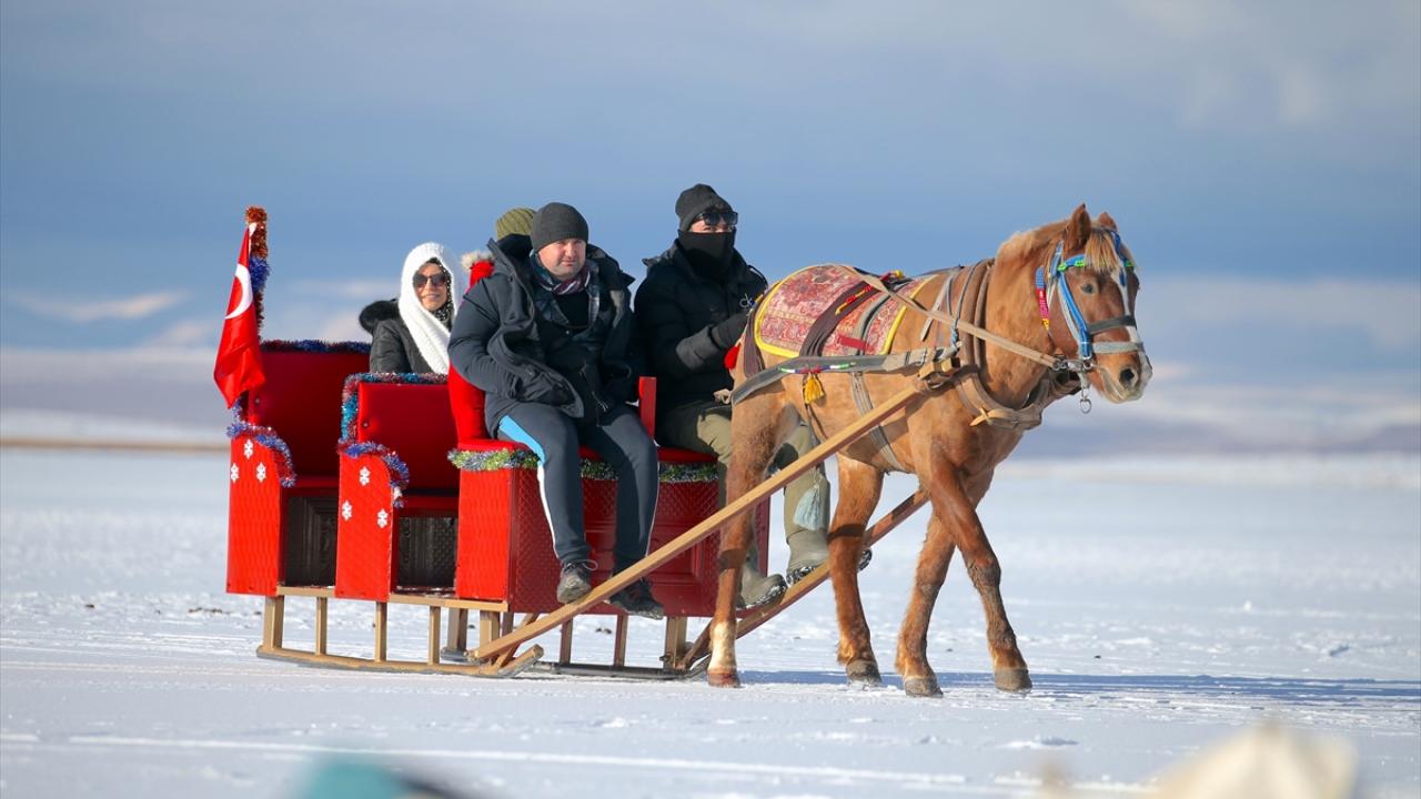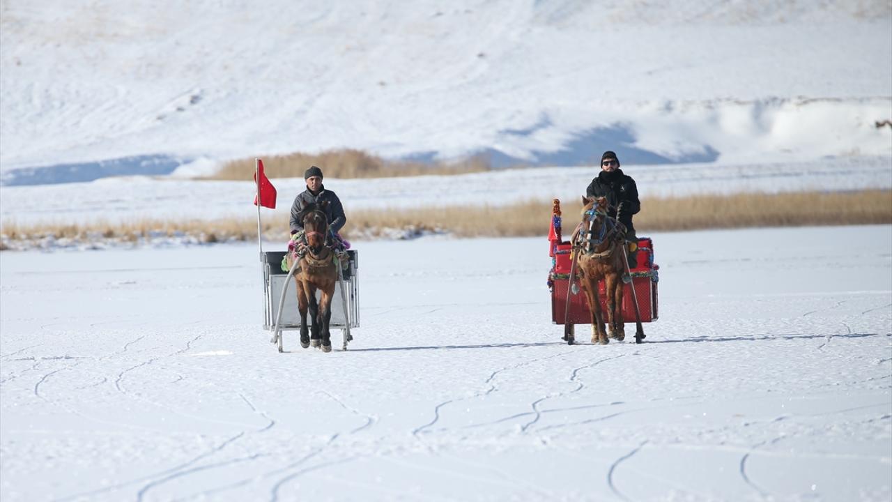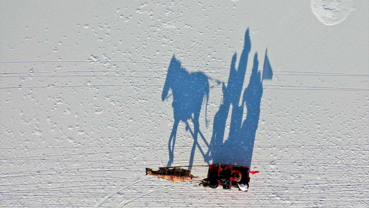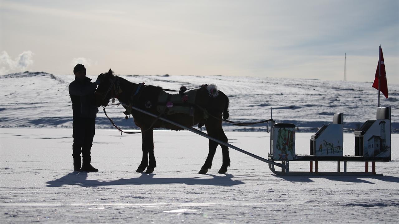 Çıldır Gölü'nde atlı kızakçılık yapan Davut Taşdemir, Doğu Anadolu Bölgesi'nin en büyük ikinci gölü Çıldır'da atlı kızak turlarının başladığını söyledi.