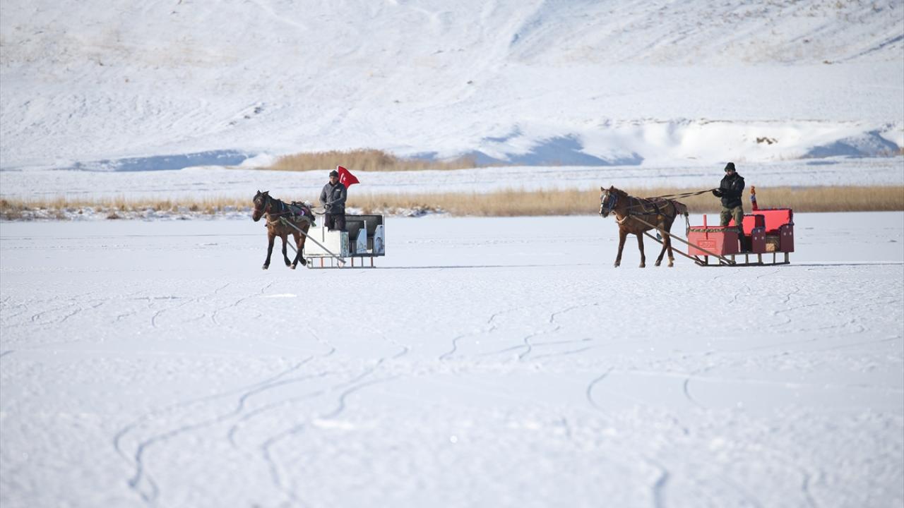 Taşdemir, "Atlarla gölün üzerine çıktık, kızak güzergahlarını belirledik, sıkıntı yok, müşterilerimizi gezdirdik. Sezon açıldı, tüm müşterilerimizi bekliyoruz. Burası en erken donan yer, 3-4 ay gölde hizmet veriyoruz" dedi.
