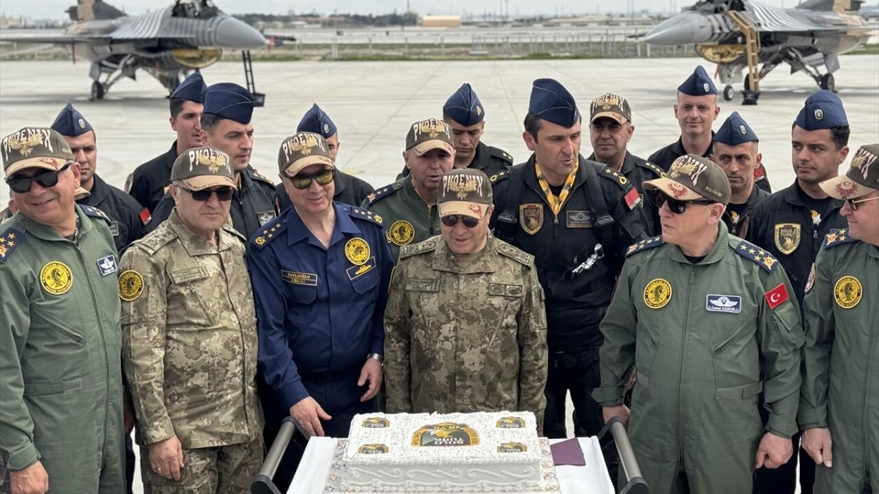 Gösteri uçuşunun ardından pist başında düzenlenen törende, Bayraktaroğlu ve beraberindeki kuvvet komutanları, SOLOTÜRK ekibiyle 15. yıl pastasını kesti.