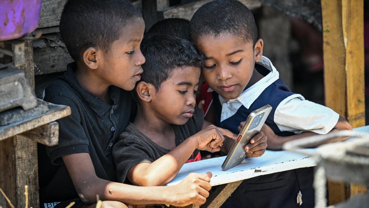Toliara'da çocuklar, köylerinde zaman geçiriyor.