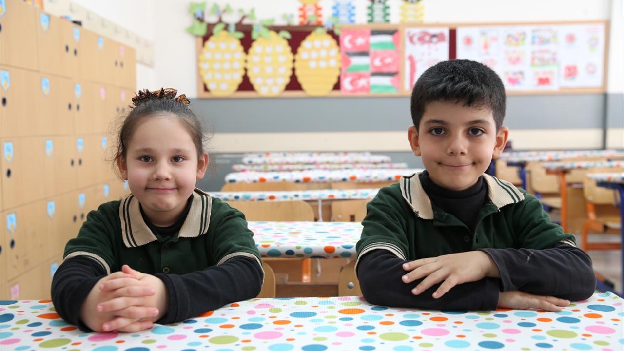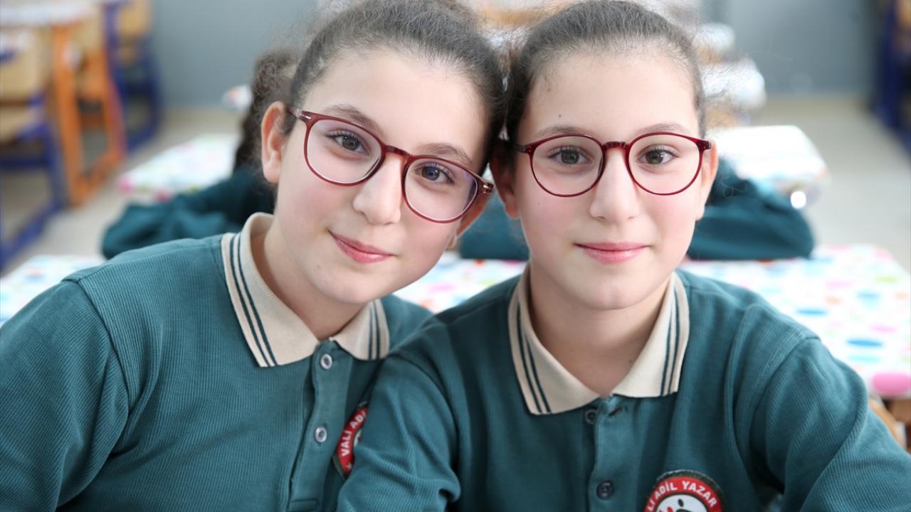 Fiziksel benzerlikleri nedeniyle arkadaşları ve öğretmenlerinin ayırt etmekte zorlandığı ikizler, bu özellikleriyle okula renk katıyor.