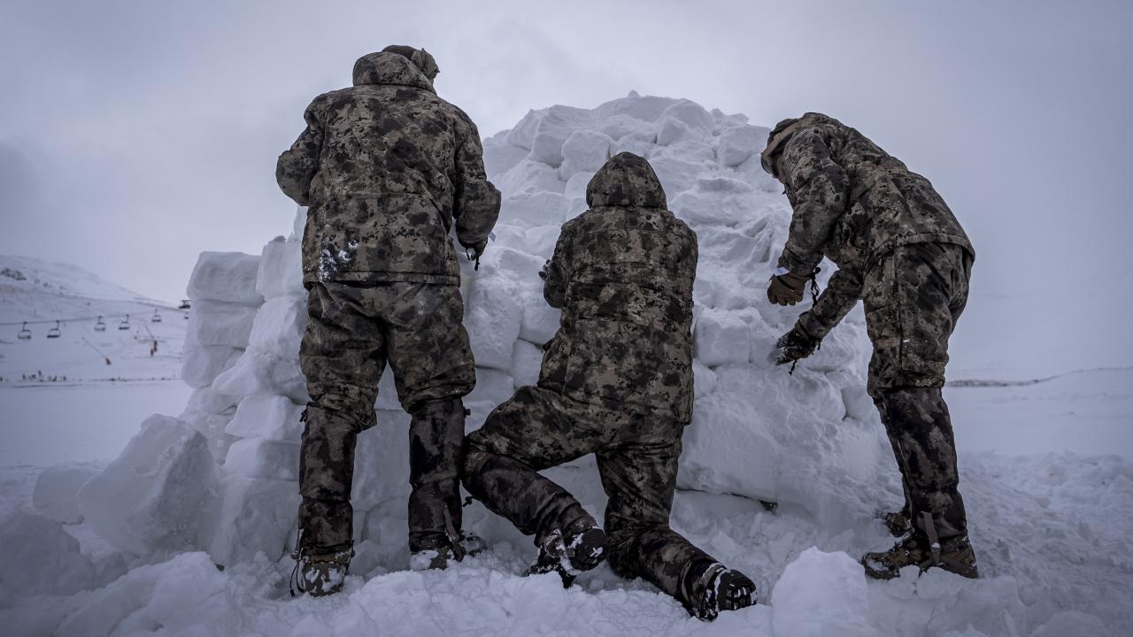 Dağdaki 3 günlerini iglo ev ve mağaralarda geçiren polisler, kayak yapmayı ve çetin kış şartlarında doğada kalmayı öğrendi.