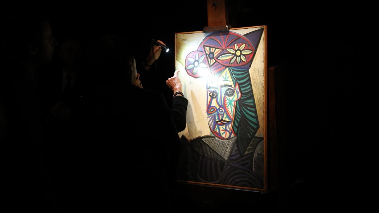 1943 yılında Picasso tarafından resmedilen ve "Şapkalı Kadınlar" serisinin dikkat çeken örneklerinden biri olarak öne çıkan “Dora Maar” adlı tablo, müzayede öncesi görüntülendi.