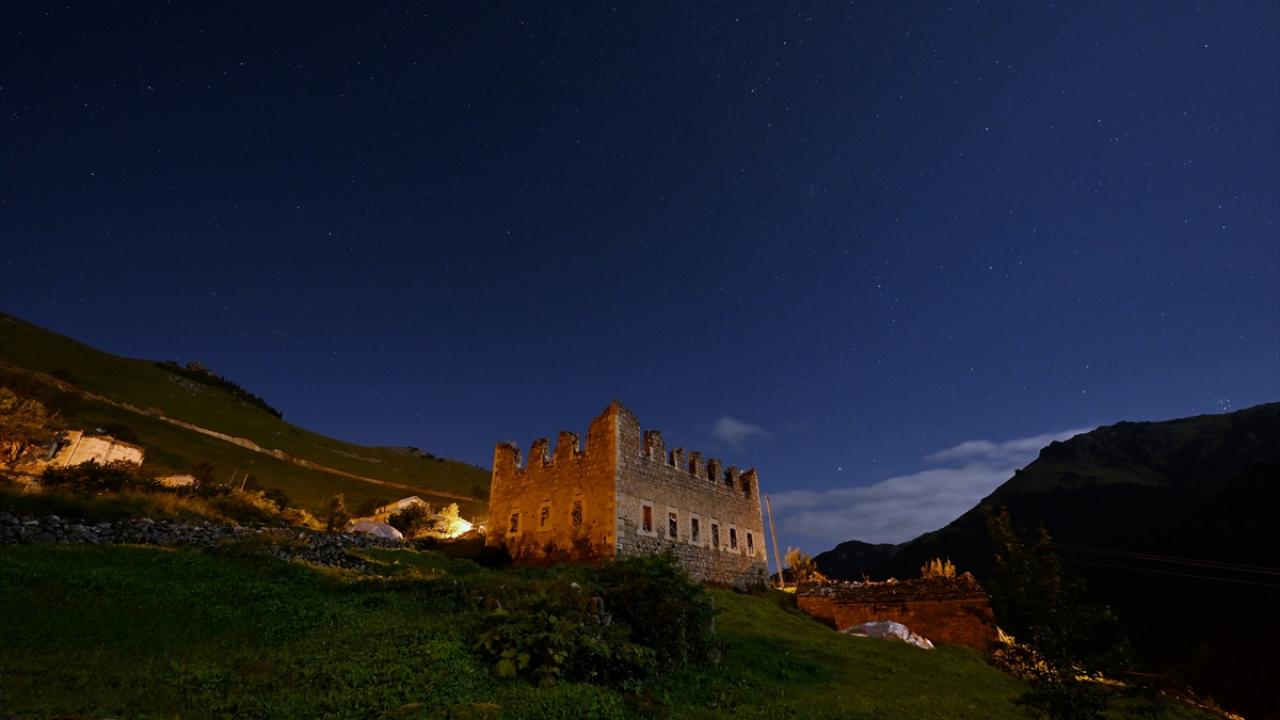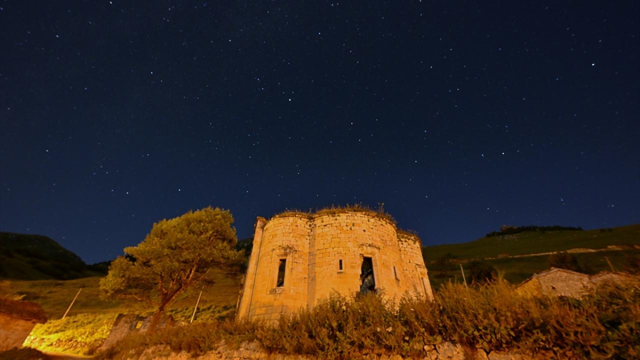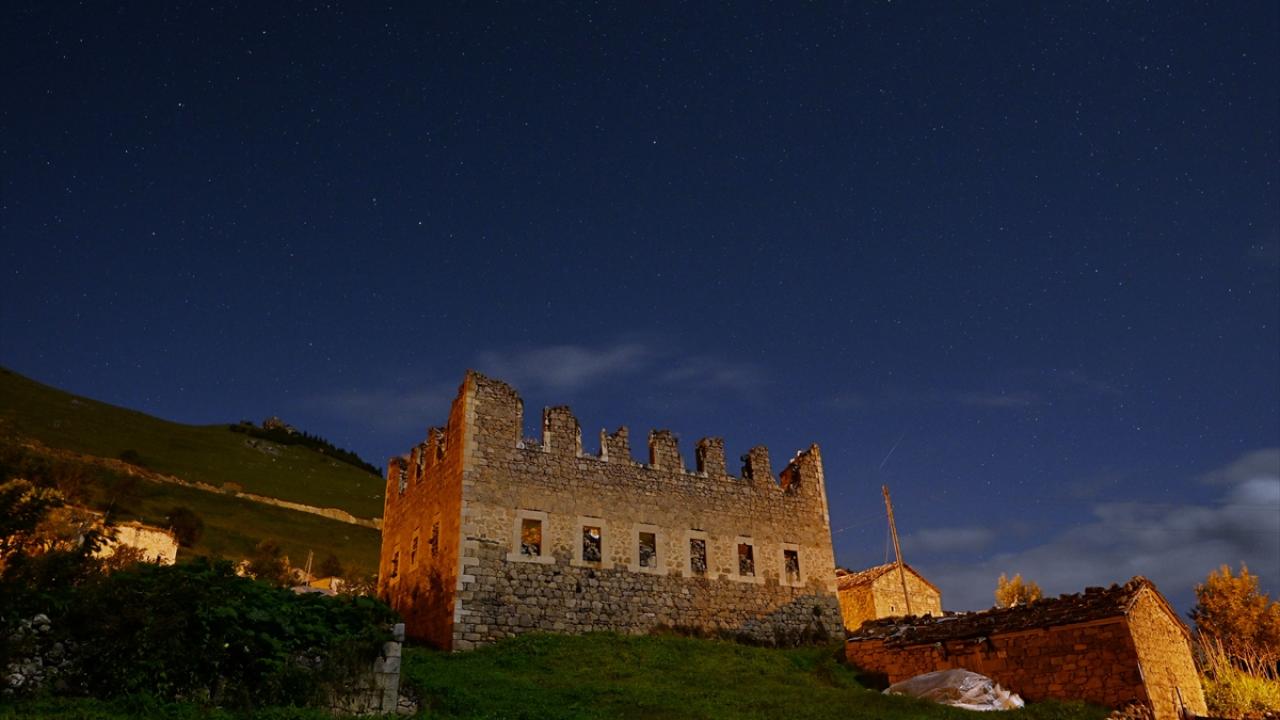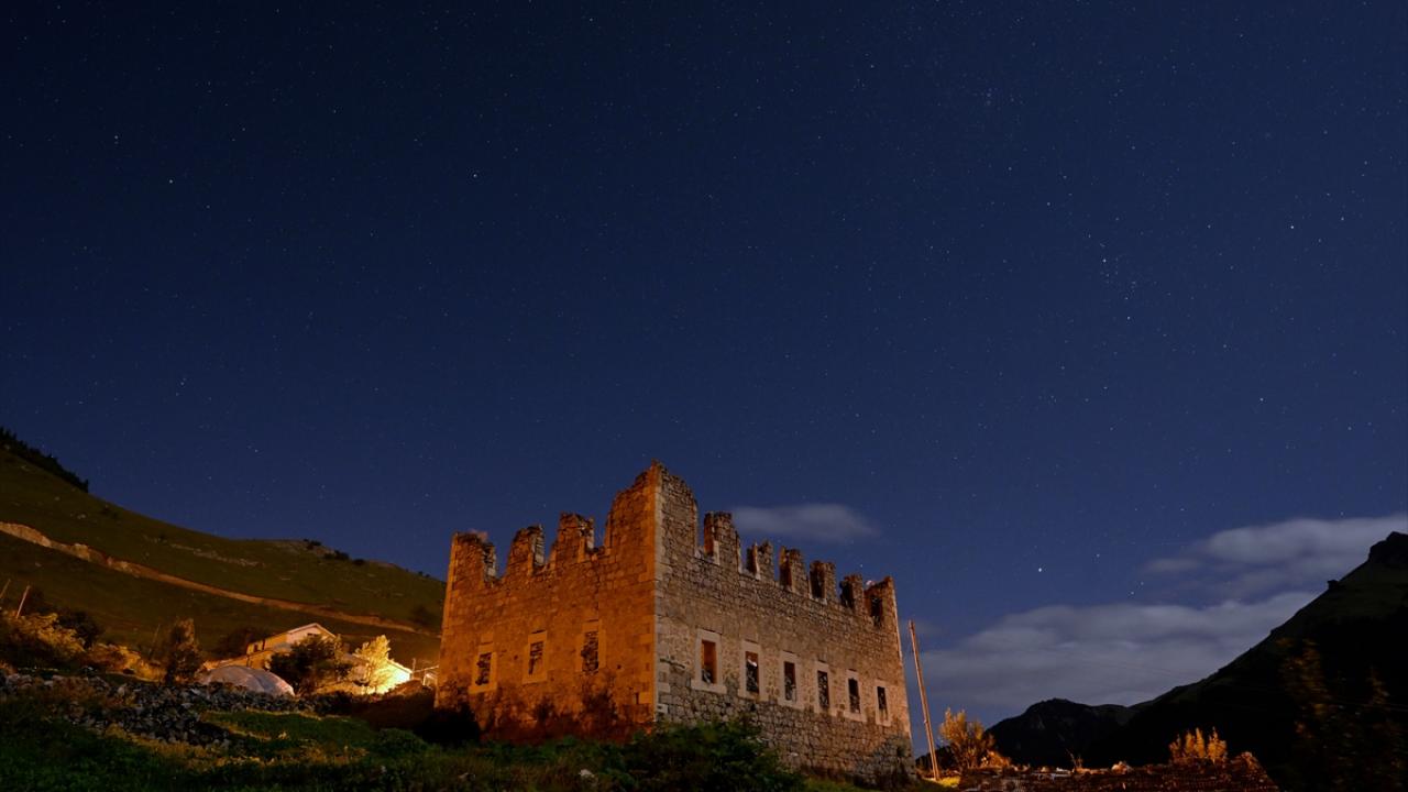 Trabzon-Gümüşhane sınırında yer alan Santa Harabeleri, gece saatlerinde uzun pozlama tekniğiyle fotoğraflandı.