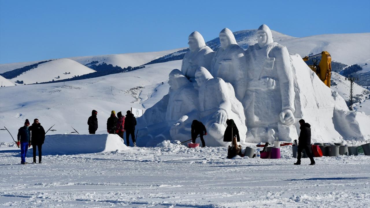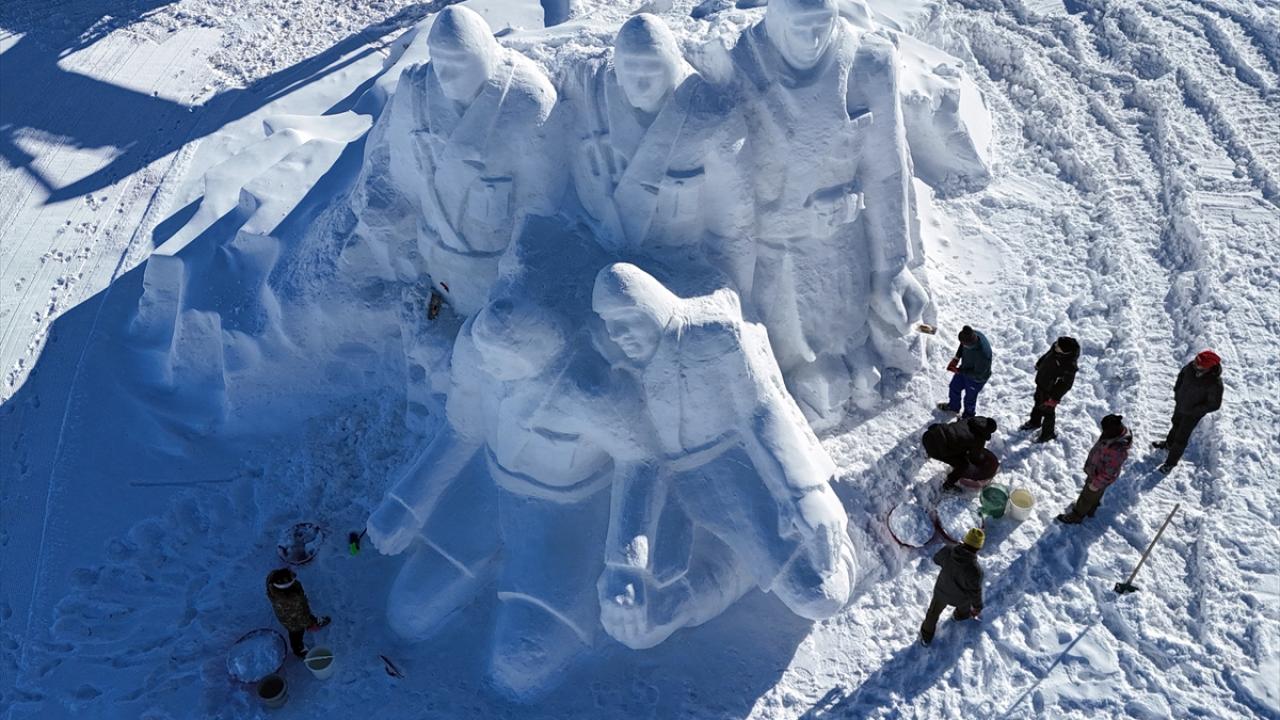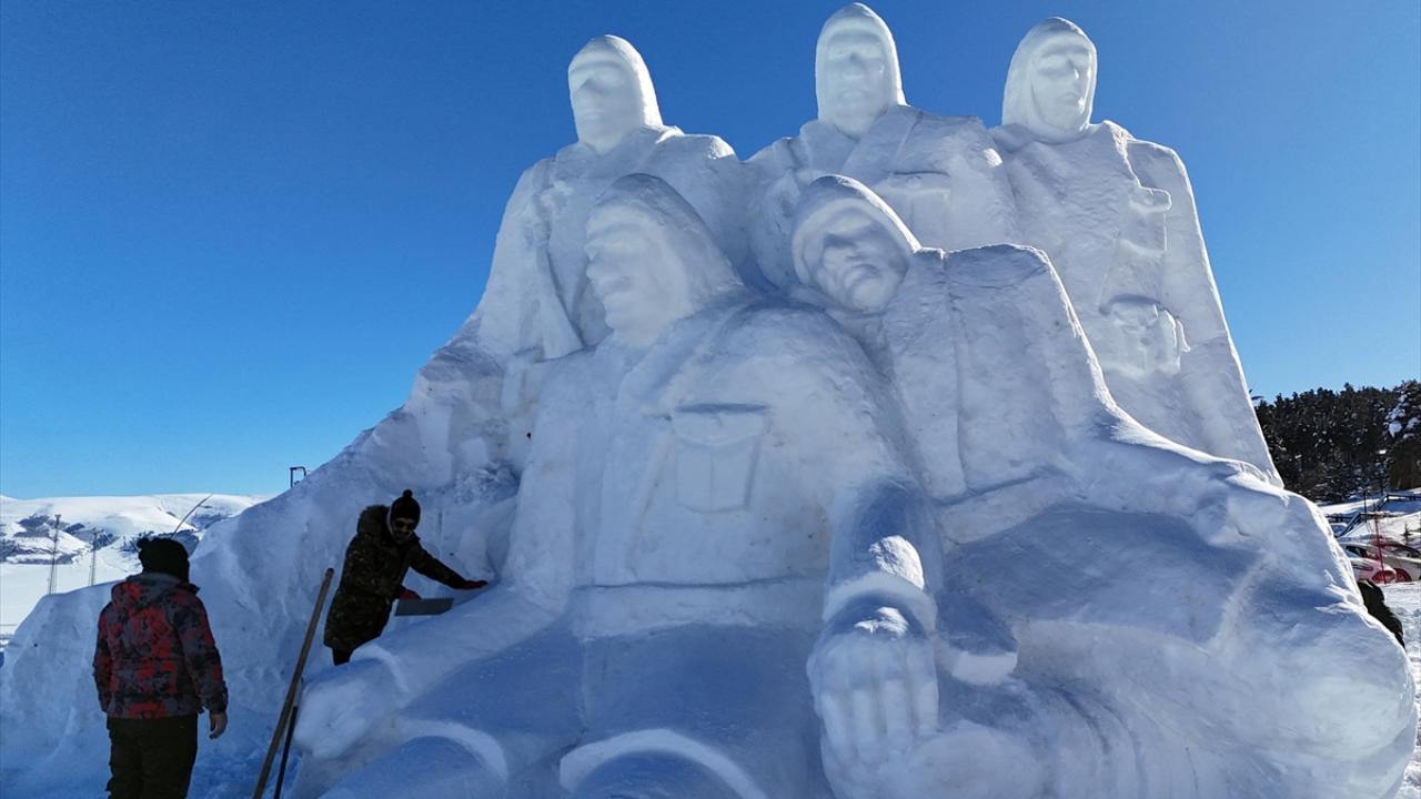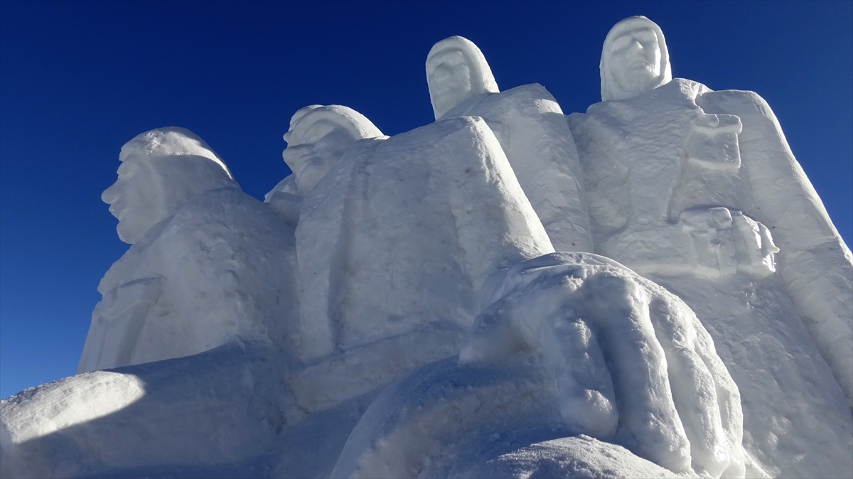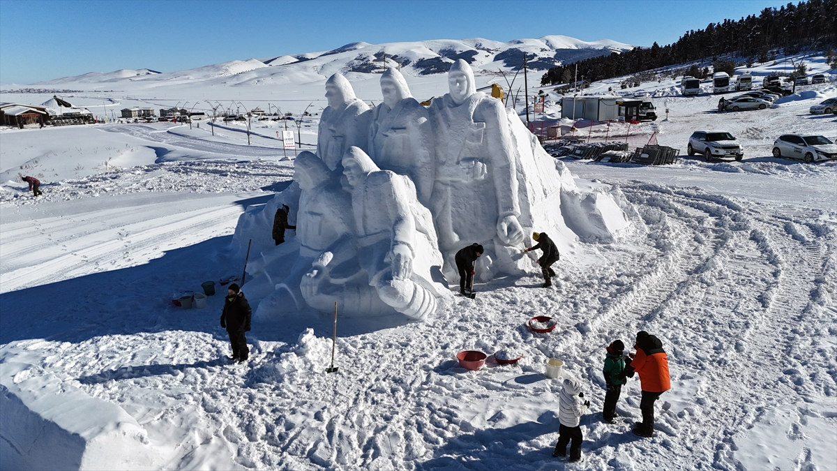 Sarıkamış ilçesinde 3-4 Ocak'ta düzenlenecek Sarıkamış Harekatı'nın 111. yılı anma etkinliklerinde sergilenecek kardan heykeller, bu yıl Sarıkamış Kayak Merkezi Oteller Bölgesi ile Kızılçubuk mevkisi olmak üzere iki noktada yapıldı.