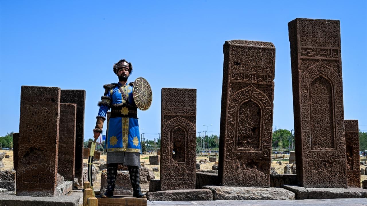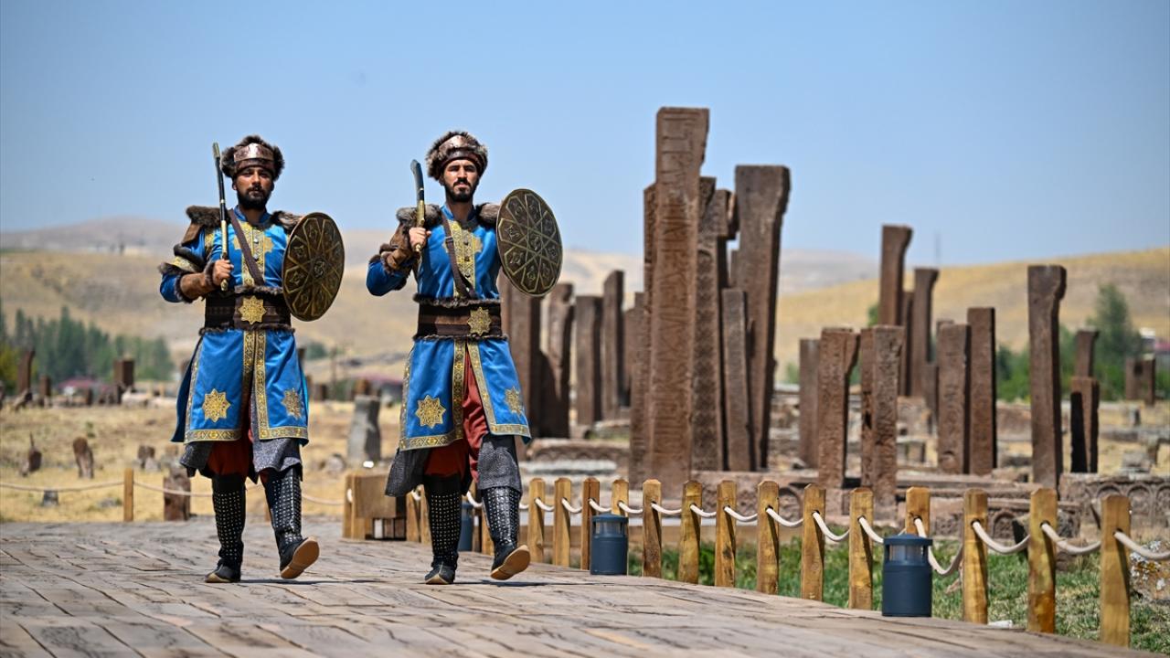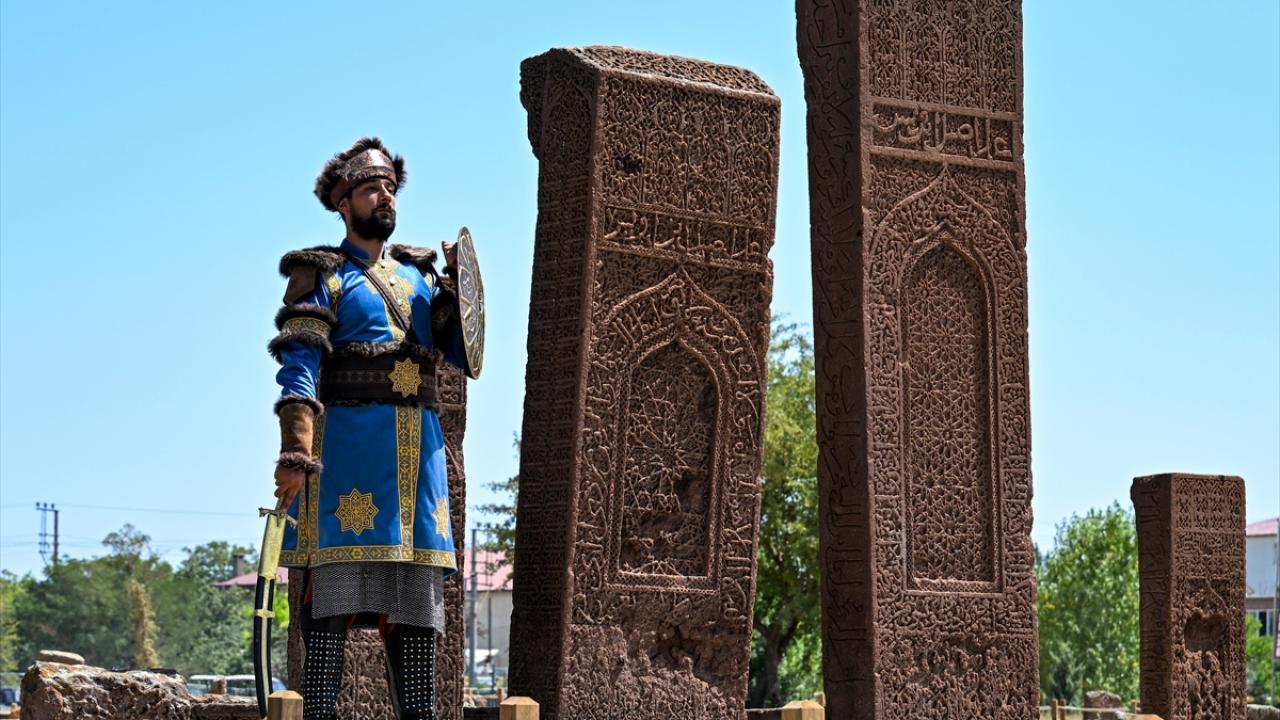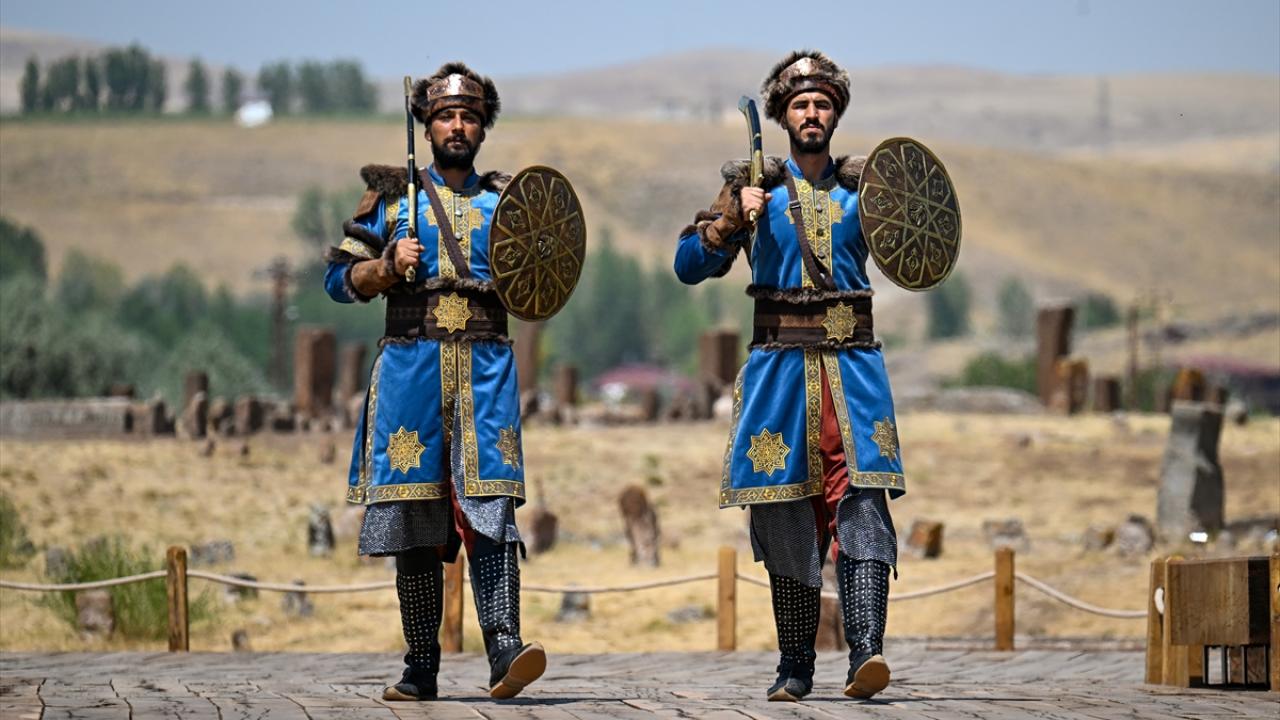 Muş'un Malazgirt ve Bitlis'in Ahlat ilçelerinde düzenlenen Malazgirt Zaferi'nin 954. yıl dönümü kutlamaları kapsamında Jandarma Genel Komutanlığı birliği giydikleri Selçuklu Alp kıyafetleriyle Selçuklu Meydan Mezarlığı'nda ecdada saygı nöbeti tuttu.