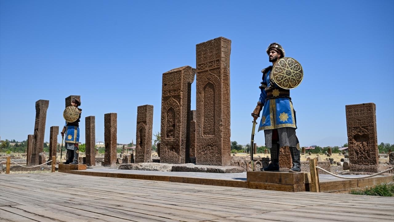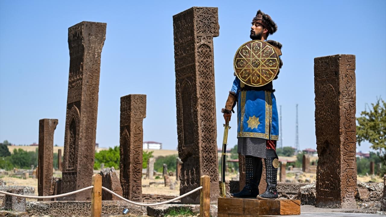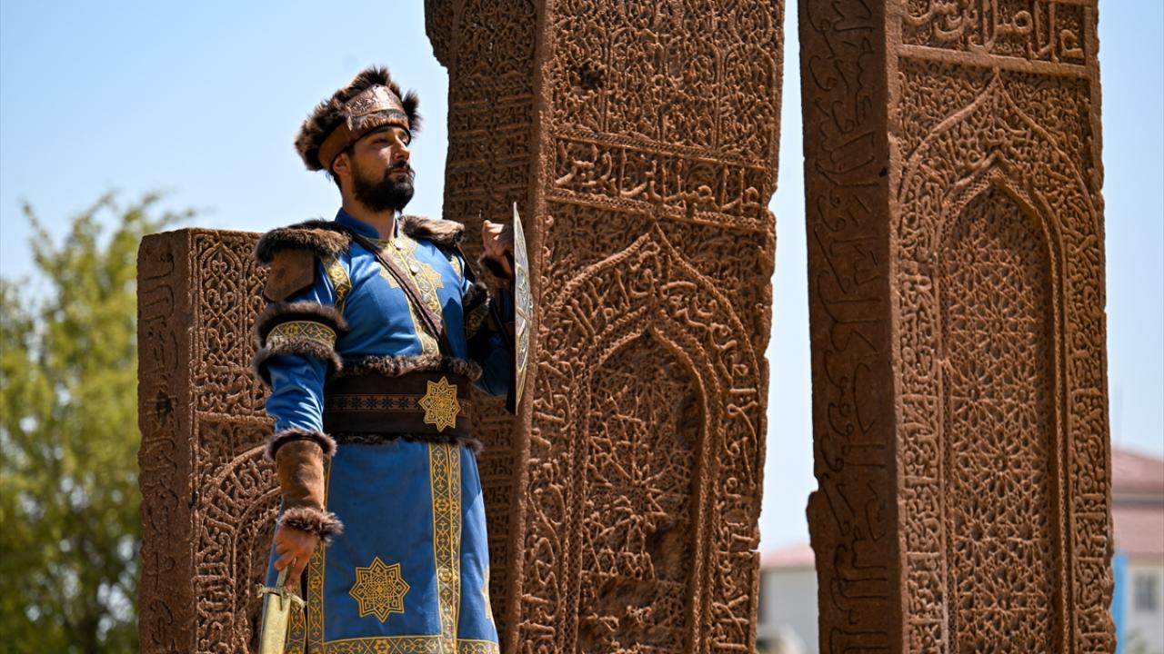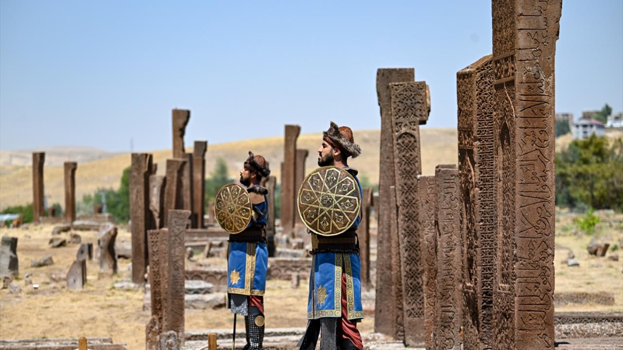 Muş'un Malazgirt ve Bitlis'in Ahlat ilçelerinde düzenlenen Malazgirt Zaferi'nin 954. yıl dönümü kutlamaları kapsamında Jandarma Genel Komutanlığı birliği giydikleri Selçuklu Alp kıyafetleriyle Selçuklu Meydan Mezarlığı'nda ecdada saygı nöbeti tuttu.