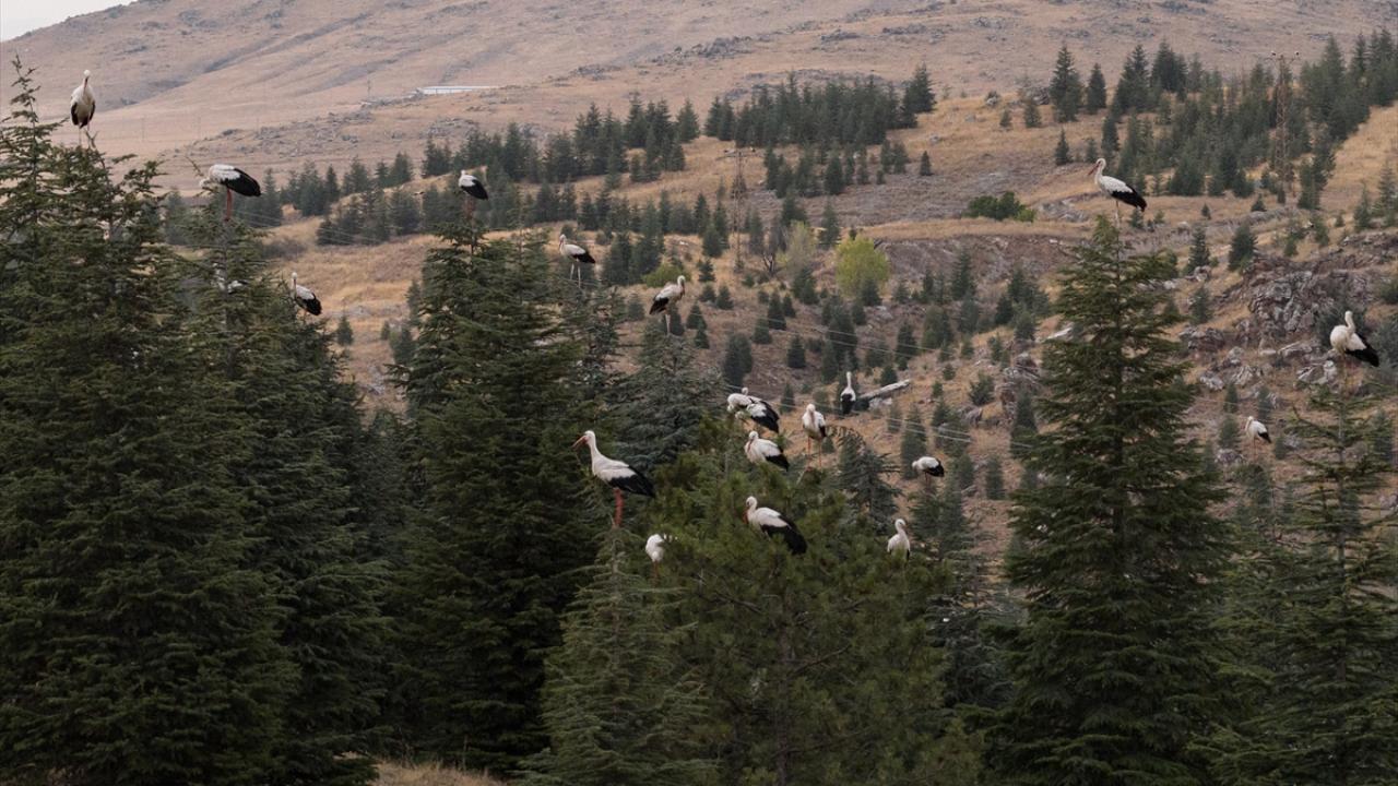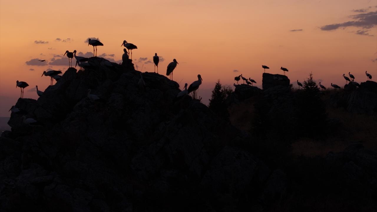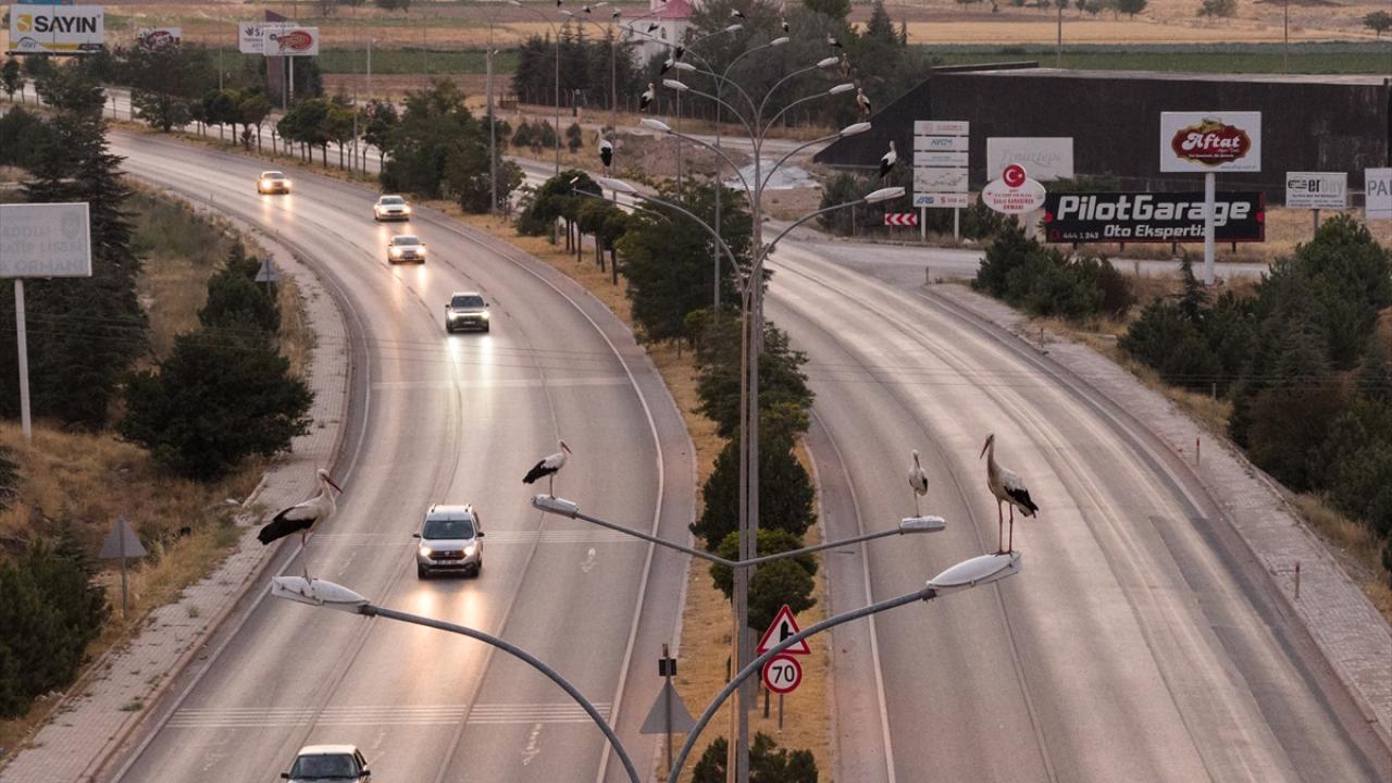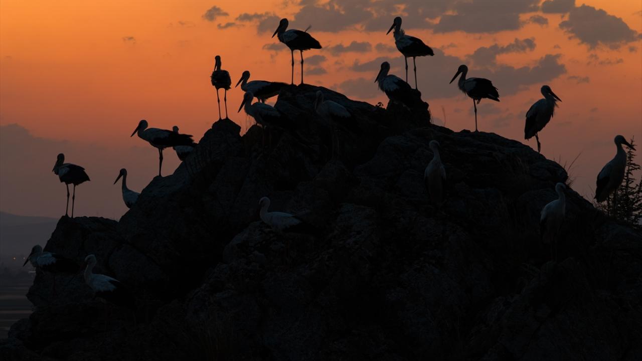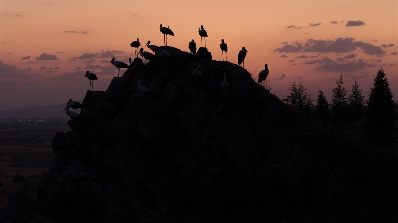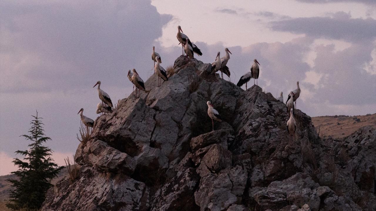 Gökyüzünde süzülen leylekler, ağaç dallarına, kayaların üzerine ve aydınlatma direklerine konarak dinlendi.