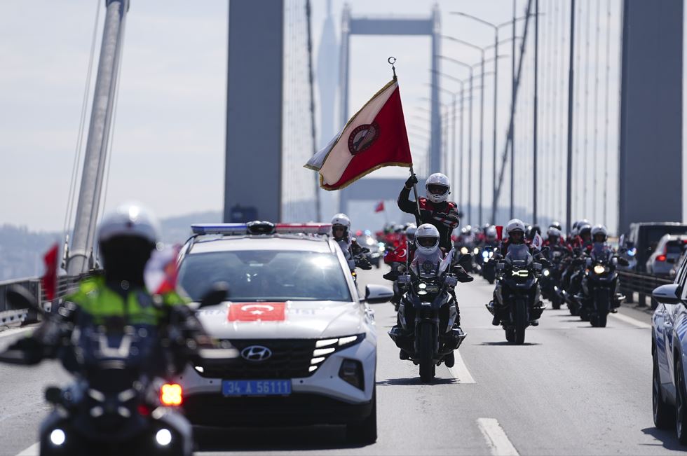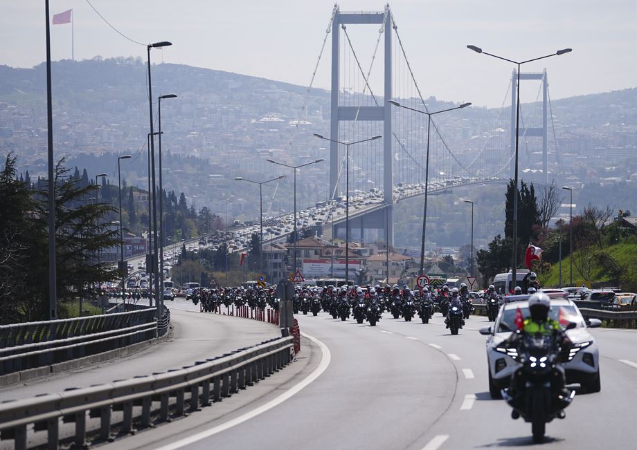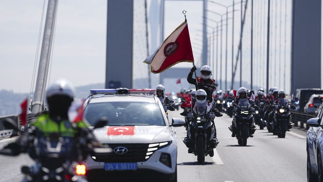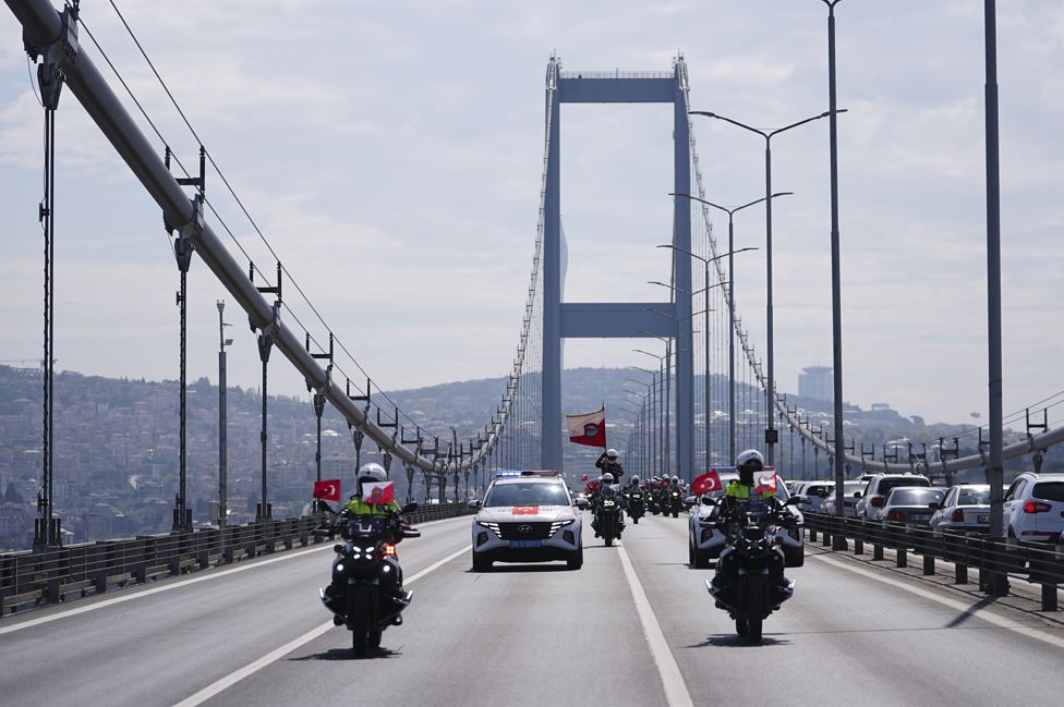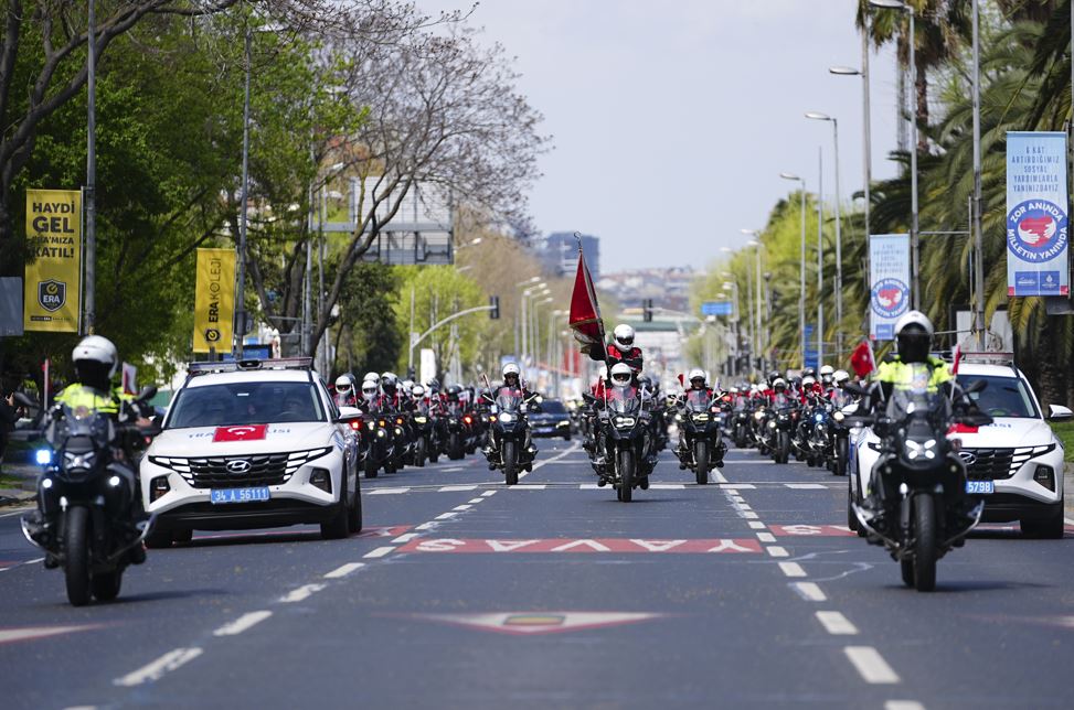 Havada bir polis helikopterinin de eşlik ettiği kortejdeki motosikletlerde Türk bayrağı ve Emniyet Genel Müdürlüğünün bayrakları yer alırken, ekip araçlarının önlerine de Türk bayrakları asıldı.