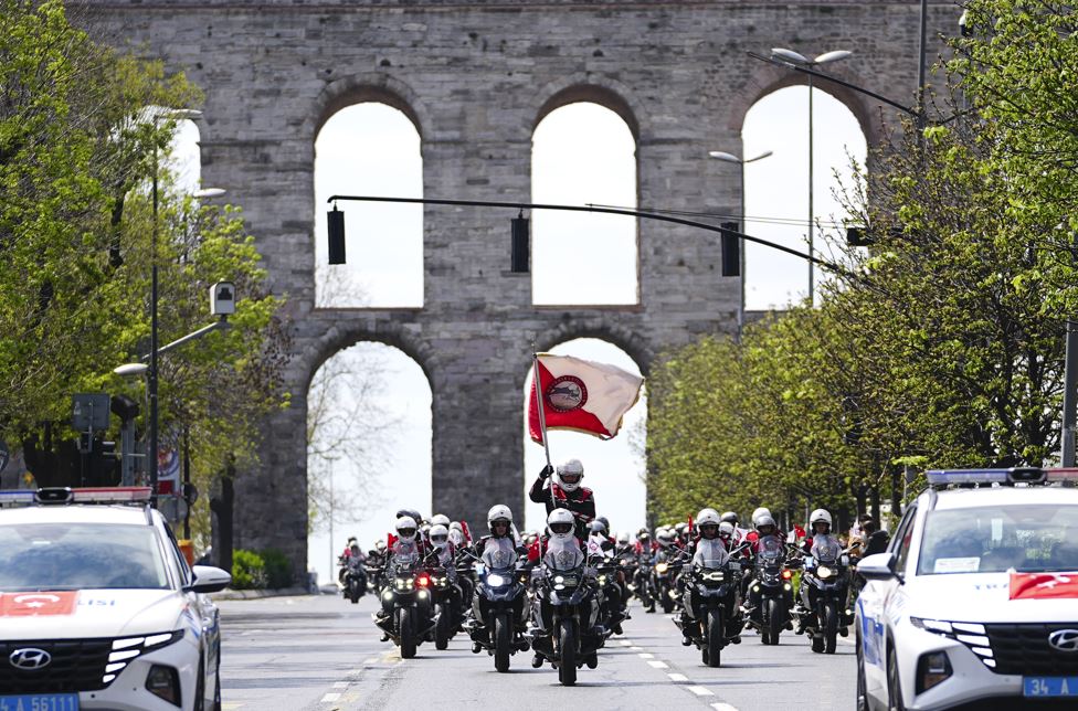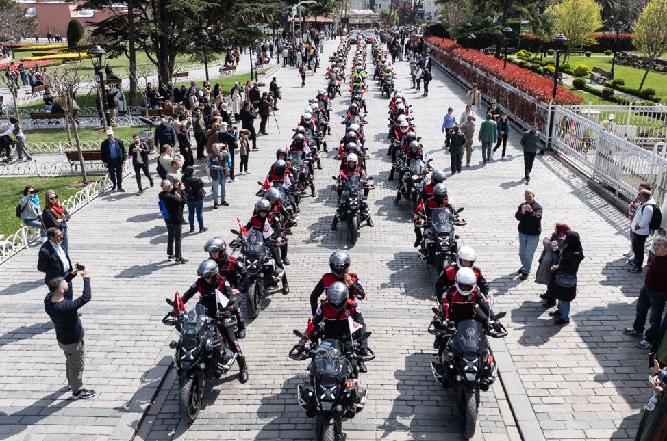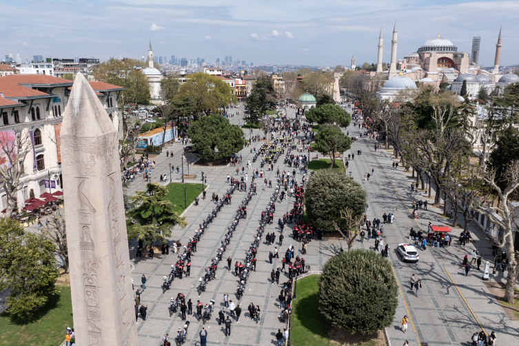 Motosikletli ekipler burada Alman Çeşmesi ile Dikilitaş arasındaki alana sıralandı.