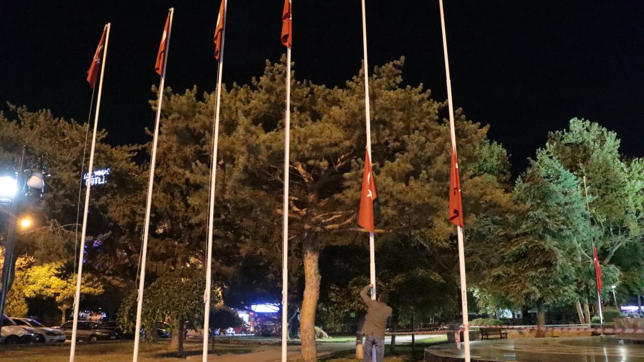 İsrail'in Gazze'de sivillere yönelik saldırıları dolayısıyla 3 gün süreyle milli yas ilan edildiğinin açıklamasının ardından Kırklareli'nde bayraklar yarıya indirildi.