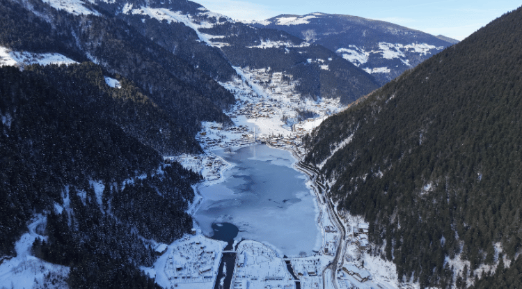 Doğal güzelliğiyle öne çıkan Uzungöl, kışın da görülmeye değer manzarasıyla bölge turizmine katkı sağlamaya devam ediyor.