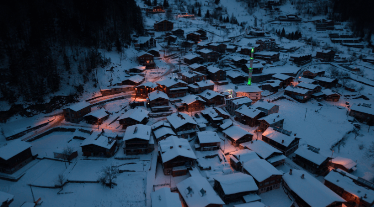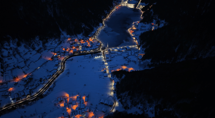 Uzungöl ve çevresindeki karla kaplı ormanlar dron ile görüntülendi.