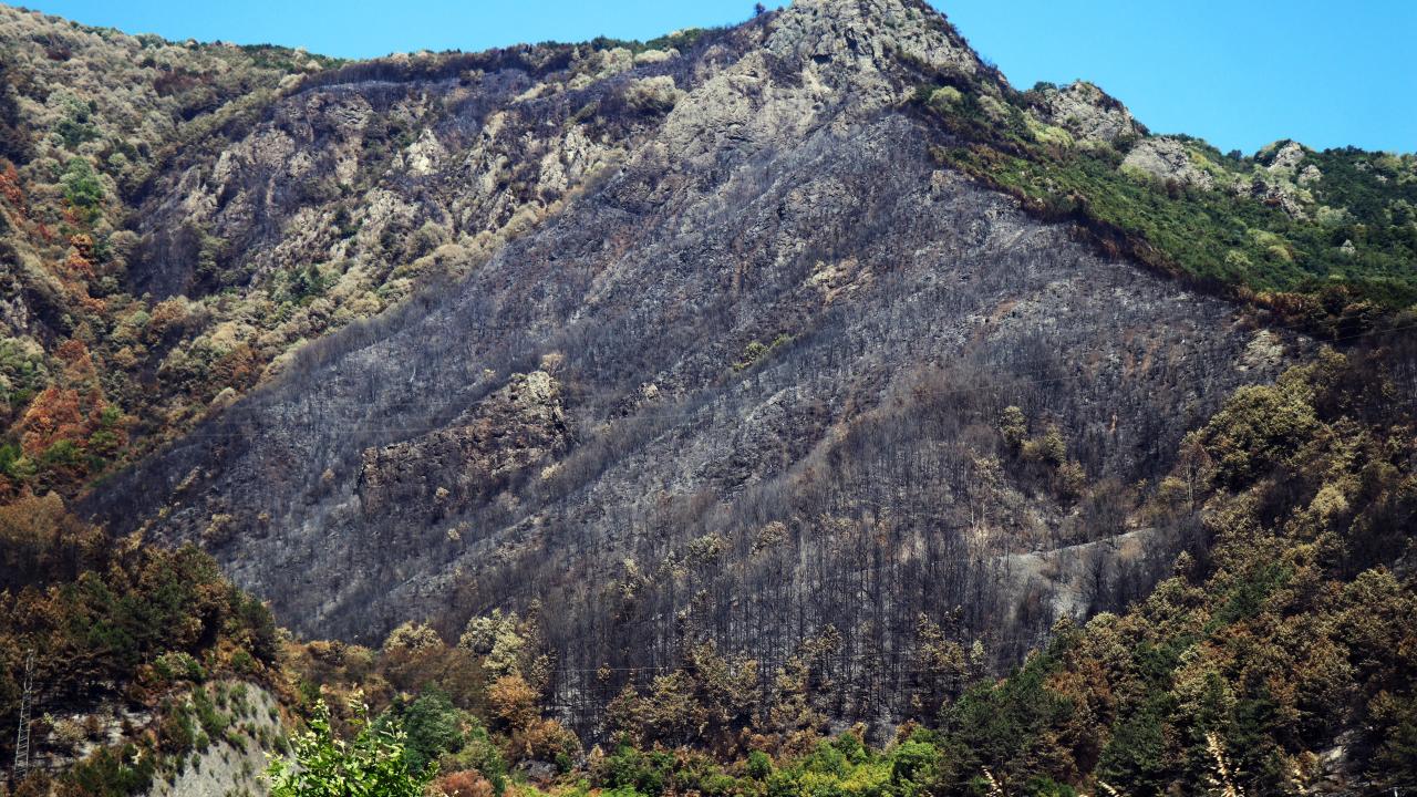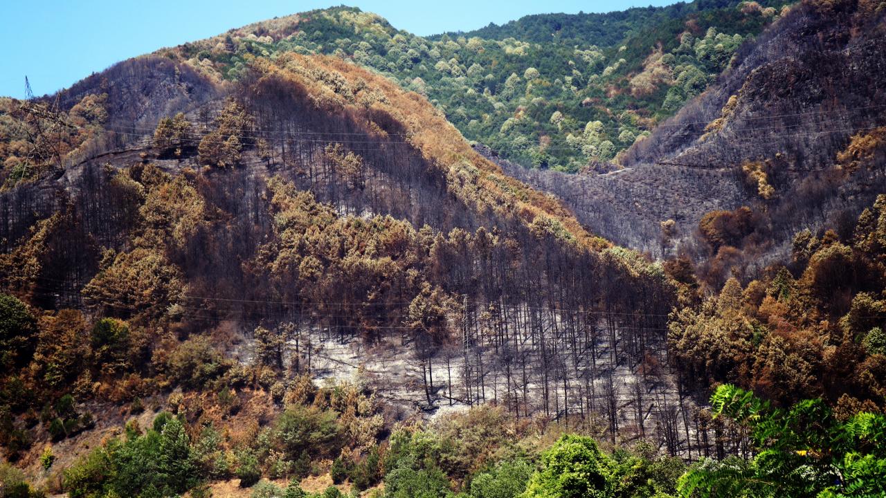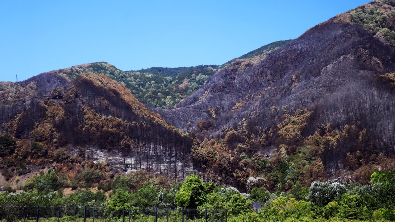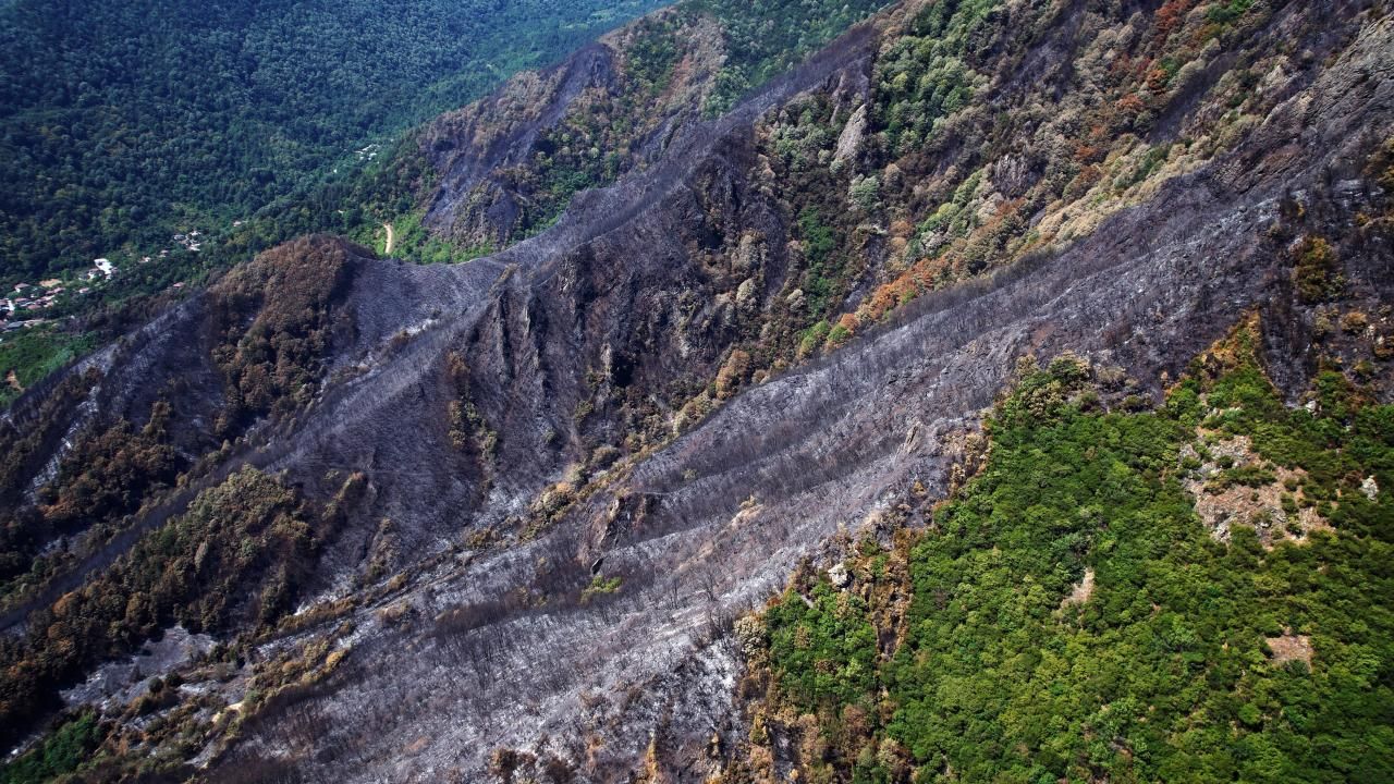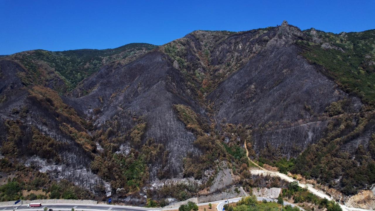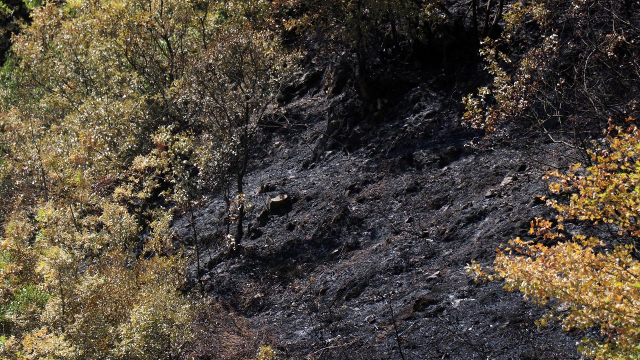 Yangının söndürülmesinden iki gün sonra verilen hasar da gözler önüne serildi. Bir tarafta yeşilin, diğer tarafta siyahın tonlarının olduğu alan havadan görüntülendi.