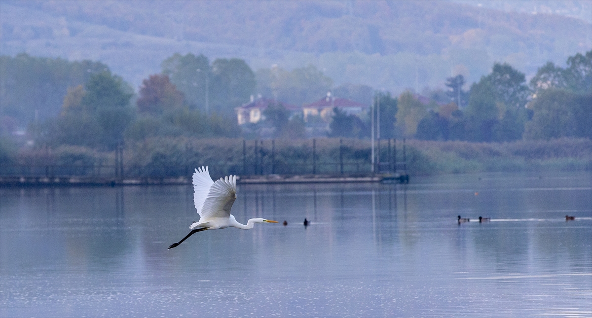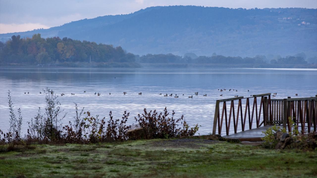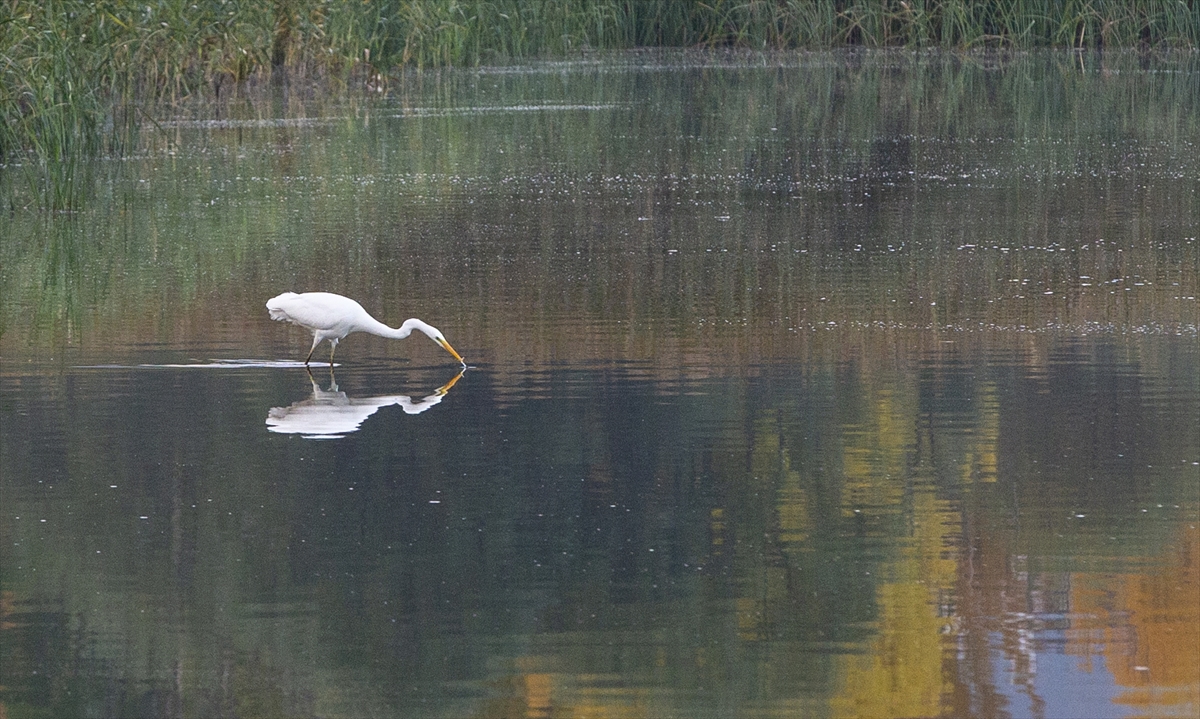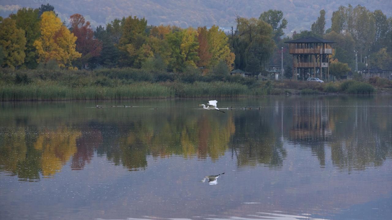 Her yıl binlerce göçmen kuşun uğrak noktası olan göl kıyısında, söğüt ve kavak ağaçlarıyla birlikte farklı türlerdeki bitkiler ve sazlık alanlar sonbaharın renkleriyle güzel görüntü oluşturdu.