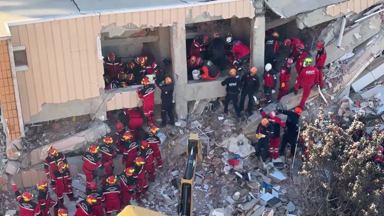 Çok sayıda AFAD, JAK, sivil toplum kuruluşu ve belediye ekibi, enkazda arama kurtarma çalışması yapıyor.